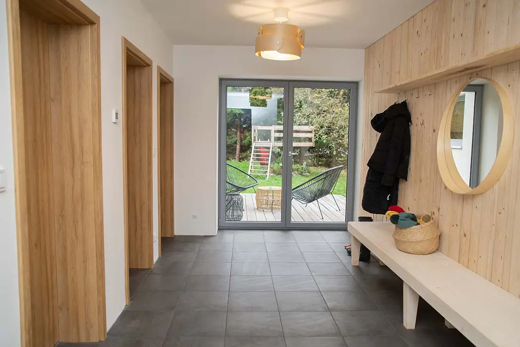 Vlastní oplocené parkoviště - 10 vozů, 3 krytá parkovací místa s možností dobíjení elektromobilů - přes wallbox, možnost zapůjčení elektrokol a přípojné vozíky Thule pro děti