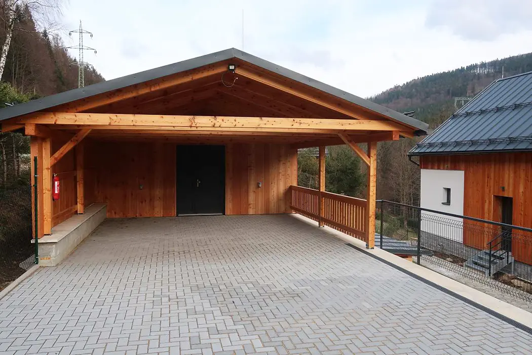 Pro 4 auta v uzavřeném objektu, další 3 auta mohou stát u objektu za plotem venku