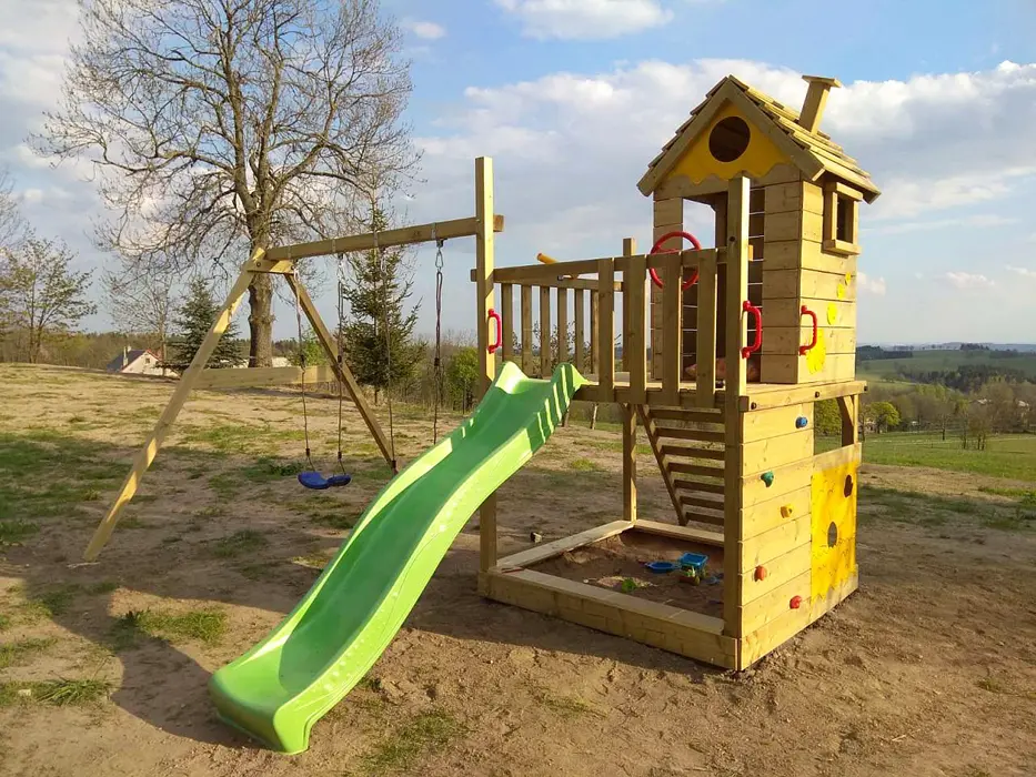 Kryté posezení, plynový gril, pro děti hřiště s pískovištěm, prolézačkami a trampolínou. Dospělí mohou využít venkovní hřiště na volejbal, nohejbal nebo badminton