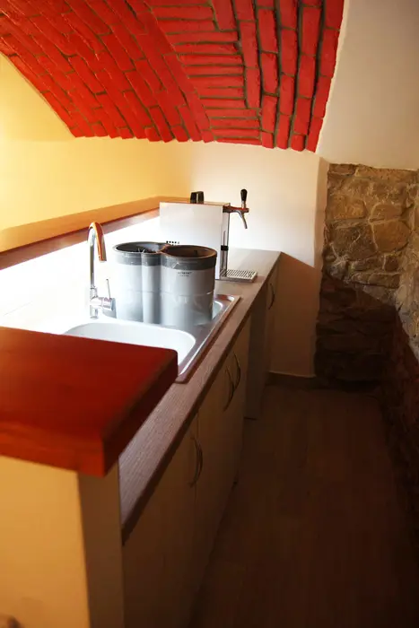 ANO - viz foto. Vinárna s posezením pro 10 osob, barem a výčepním chladícím zařízením na pivní sudy bajonet a kombi (A - typ, žehlička)