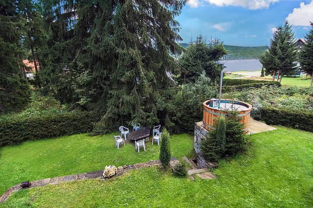 Chata na Lipně s venkovním koupacím sudem a výhledem na Lipno Další informace