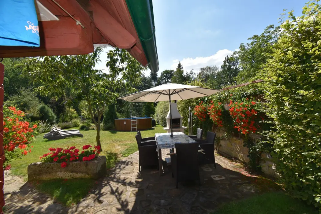 U chalupy je venkovní posezení, k dispozici gril a nadzemní kruhový bazén pouze pro klienty - viz foto.
