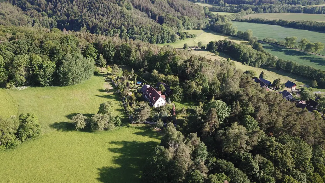 8 km Turnov, na samotě, na velikém pozemku je také dům majitelů, který užívají pouze k rekreaci, v bezprostřední blízkosti skalních pískovcových útvarů - vyhlídka na Český ráj asi 50 m od objektu