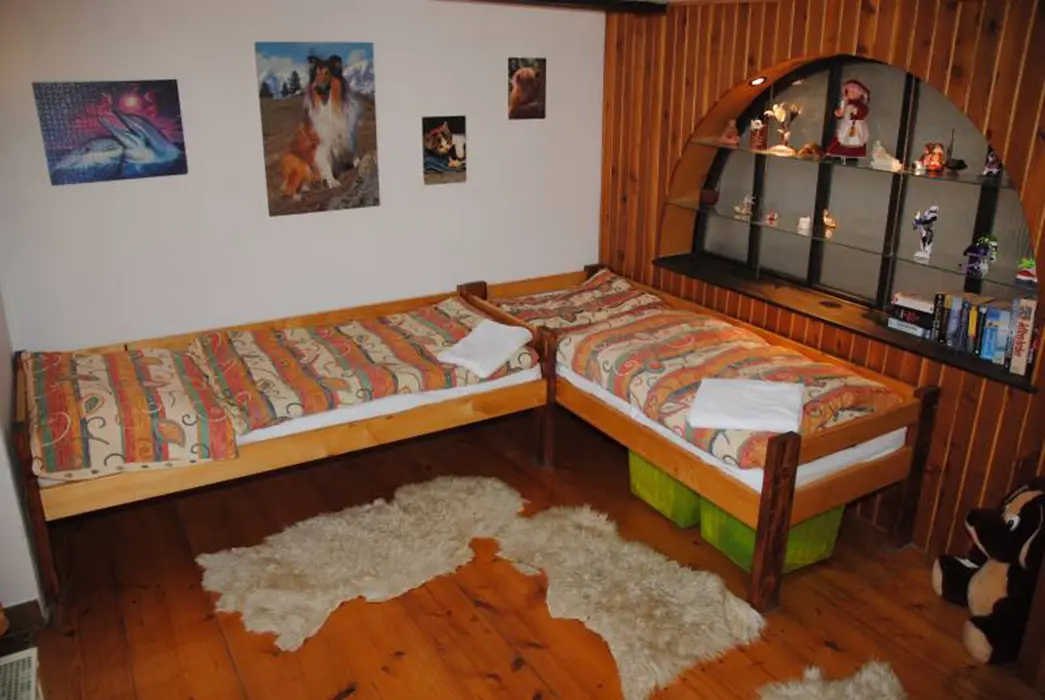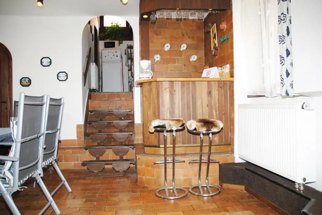 Obývací pokoj - židle, stůl, krb, bar, BTV, SAT, DVD přehrávač, CD přehrávač, rádio. Kuchyně - mikrovlnná trouba, pečící trouba, sporák, lednička/mraznička. 4 ložnice 1x2, 2x2, 2x2 + 2 rozkládací křesla. K dispozici dětská postýlka za poplatek 150 Kč za pobyt. Přistýlky na požádání. Sociální zařízení - 2 koupelny se sprchou, pračka, fén, žehlička, 2x WC. Topení ústřední plynové