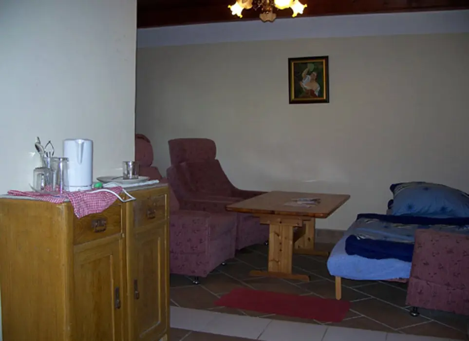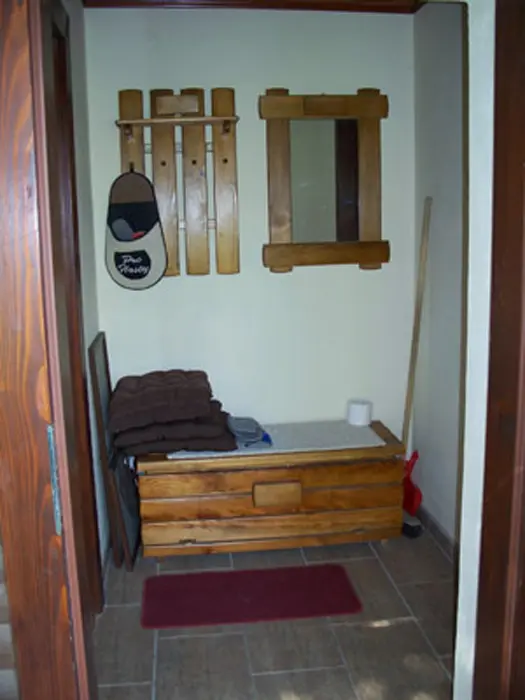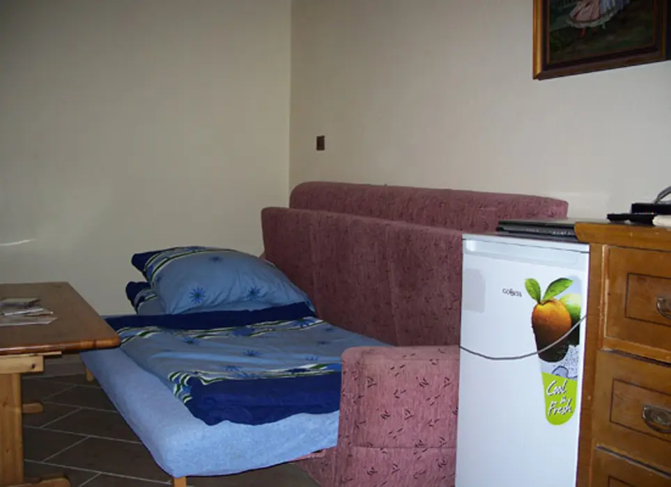 Vstupní chodbička, obývací pokoj s posezením ( možnost 1 přistýlky ), lednice, varná konvice, základní nádobí, BTV, v otevřené nice 2 lůžka. Soc. zařízení - sprchový kout, umyvadlo + WC. Topení - el. přímotopy + tuhá paliva