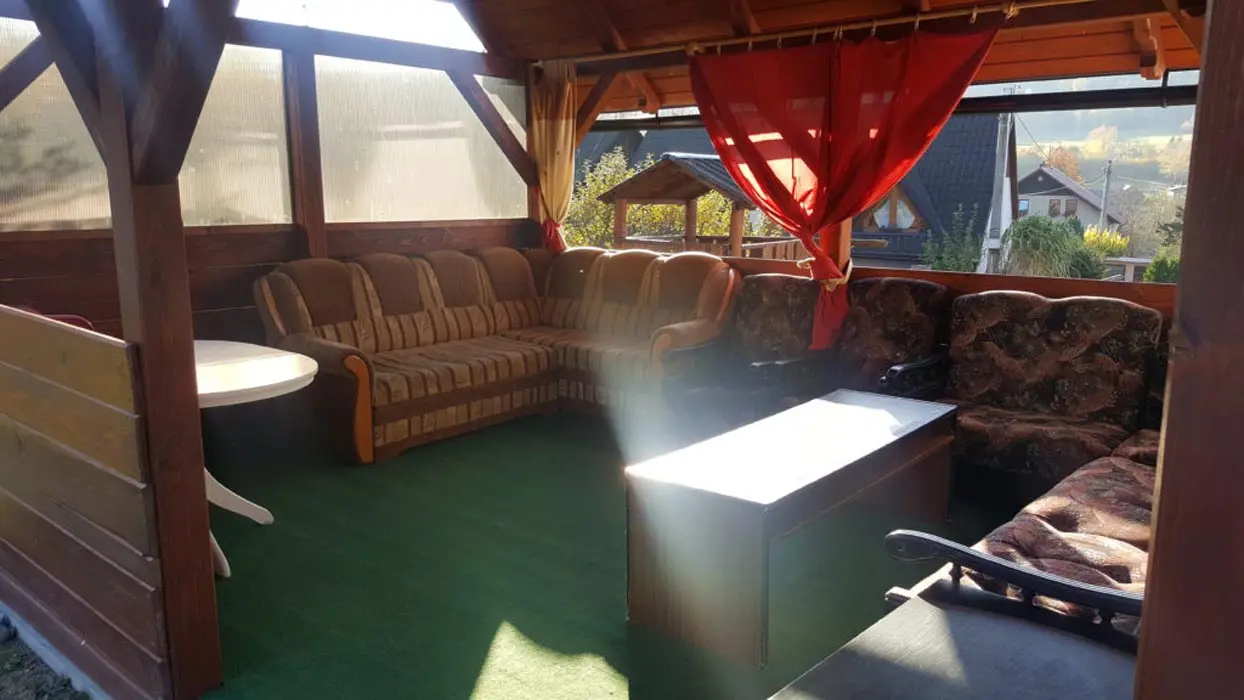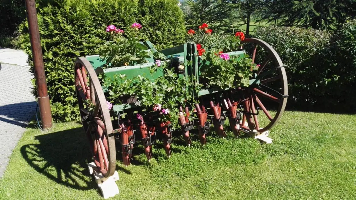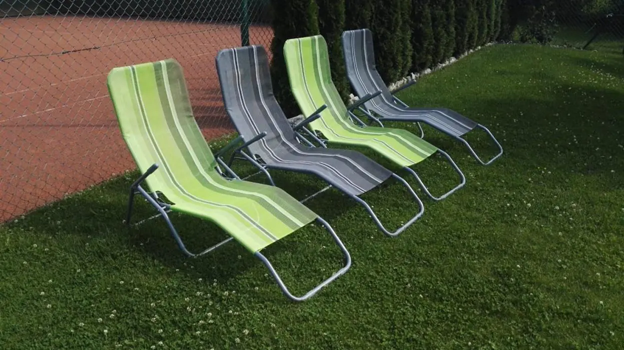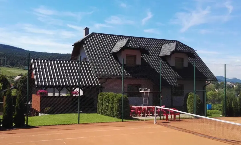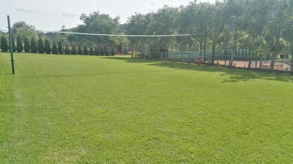 Kryté posezení, 2 venkovní terasy, sportovní vyžití - travnaté hřiště na fotbal, volejbal, trampolína, kryté pískoviště, houpačky, prolézačky, skluzavka, dětský domeček, ping pongový stůl, šipky, možnost grilování, uzamykatelná lyžárna, tenisové kurty - při týdenním pobytu zdarma