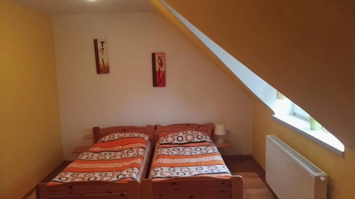 Apartmány I a II - kapacita 6 os - v každém: v přízemí obývací pokoj - LCD televize, rádio s CD přehrávačem. Kuchyně - vybavená, kuchyňská linka s el. sporákem a troubou, lednice s mrazákem, mikrovlná trouba, varná konvice a kompletní nádobí pro 6 osob. V patře 2 ložnice 2x3 lůžka, sociální zařízení v každém apartmánu sprcha a WC