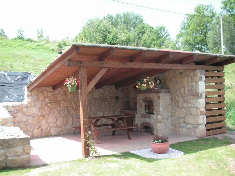 Zastřešené posezení s grilem, houpačka, pískoviště, herna, možnost uschování kol