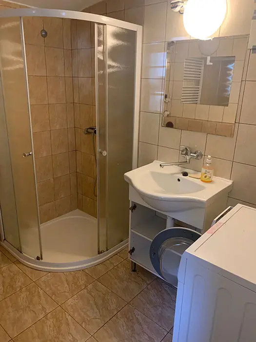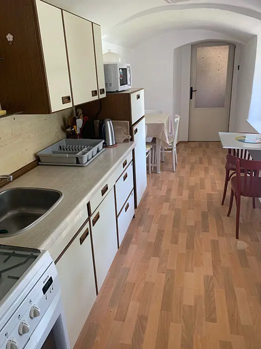 Vybavená kuchyně - pl. sporák s troubou, varná konvice, mikrovlnka, jídelní stůl a židle, lednice s mrazákem, překapávač, nádobí. 3 ložnice - 1x2 + velká LCDTV, 2x3 lůžka ( v každé stůl a židle ). Soc. zařízení - koupelna se sprchou, fén, samostatné WC. K dispozici pračka, vysavač. Topení - elektrokotel