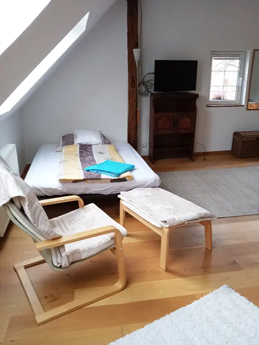 35 km Klatovy, 8 km Domažlice, 2 km Blížejov, v obci Nahošice - v domě bydlí trvale majitel, pronajímá apartmán - má samostatný vchod