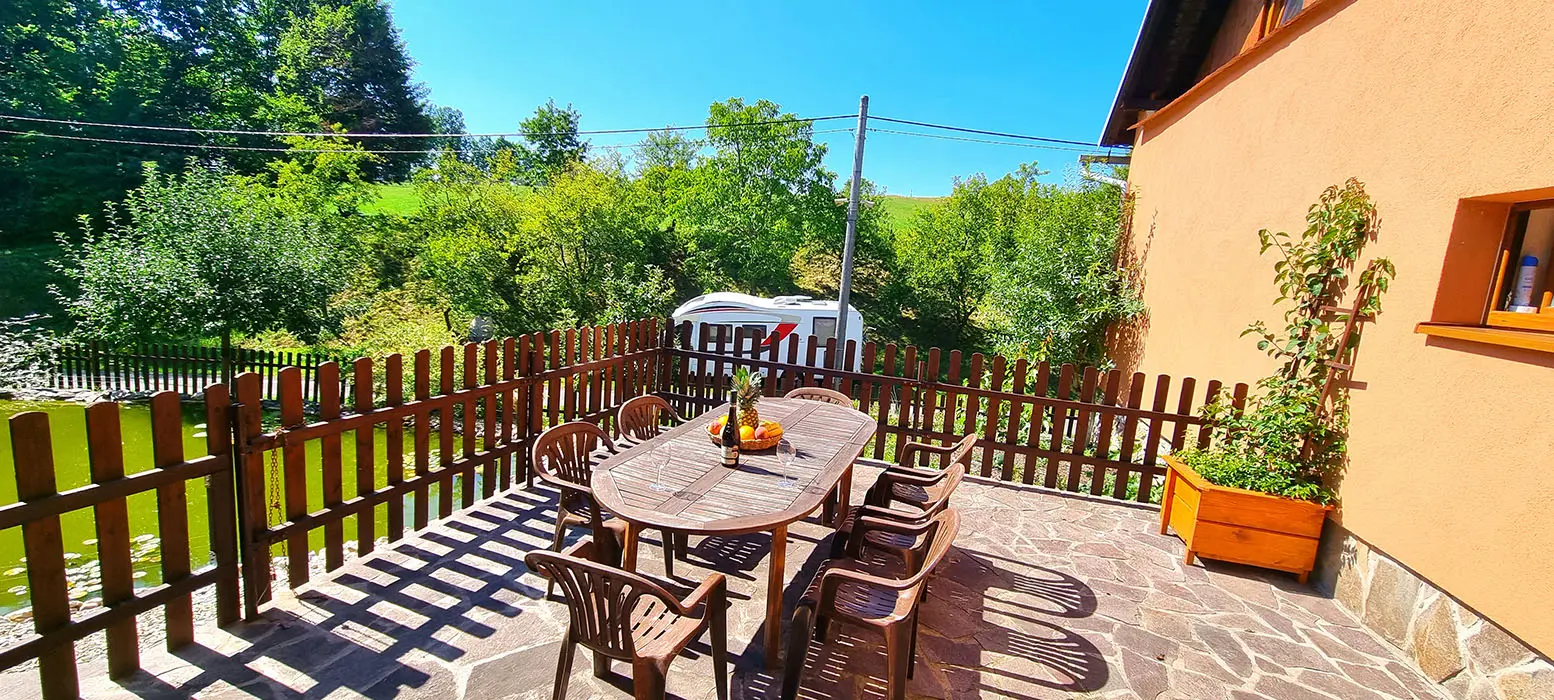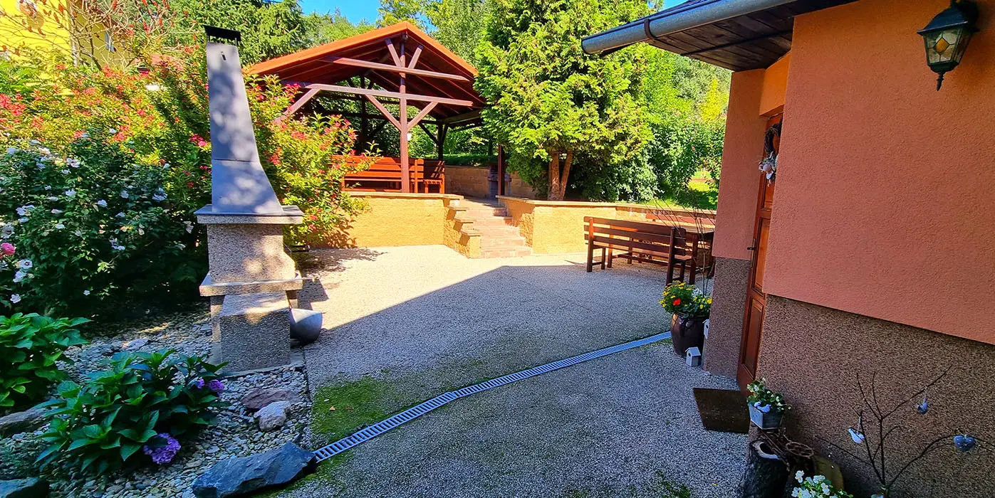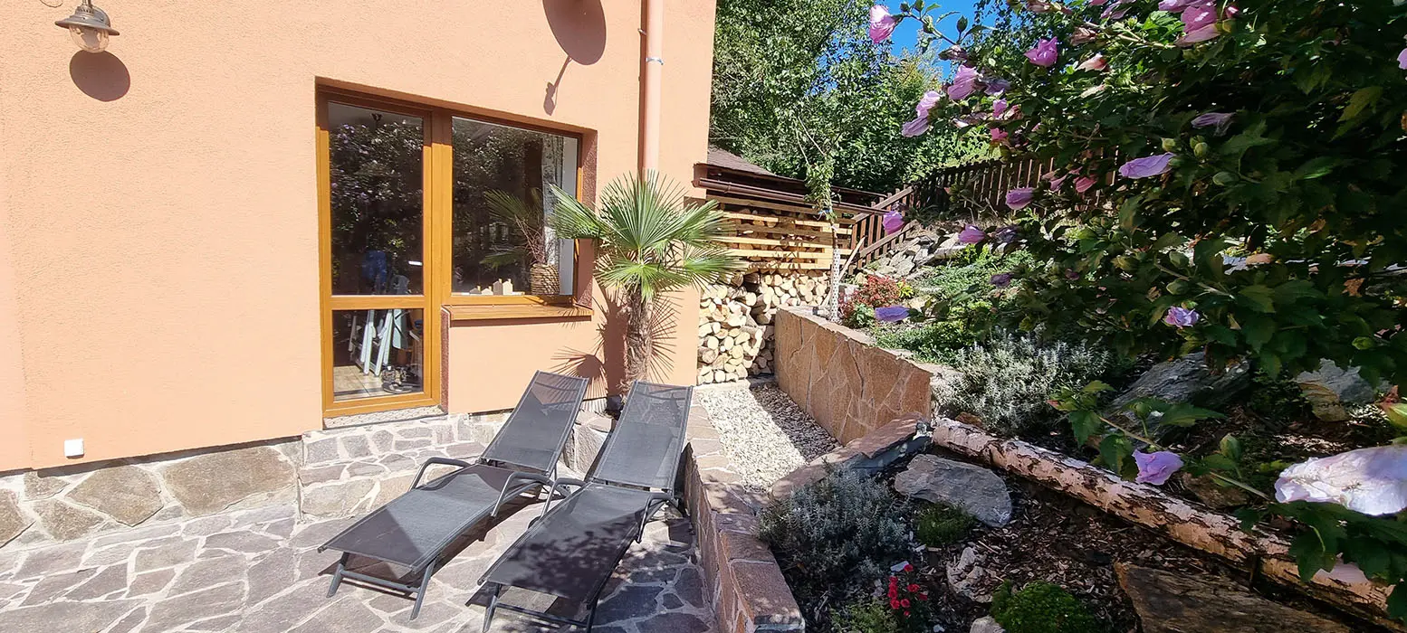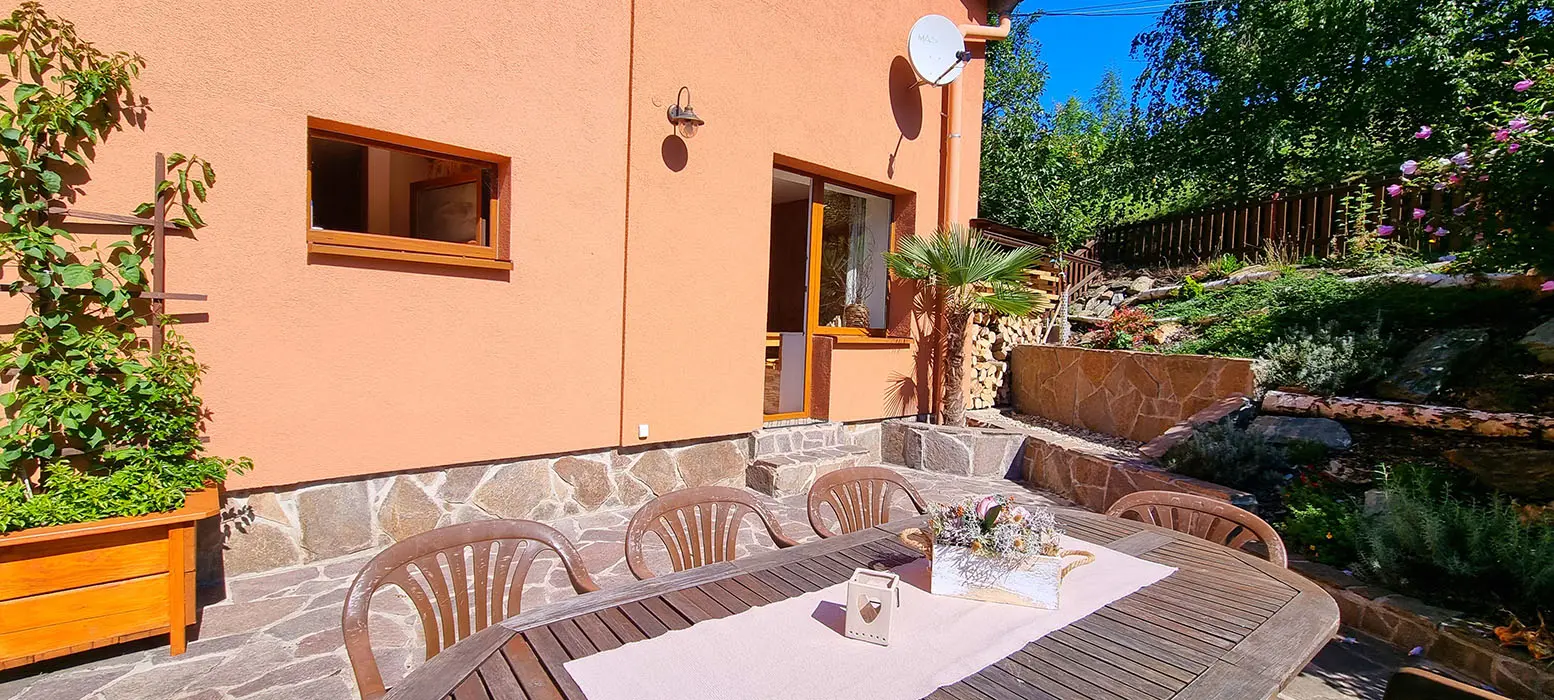 Bazén o průměru 4 m, dětský koutek, houpačka, pískoviště, ohniště, udírna, gril, velká zastřešená pergola s posezením pro 20 osob, velká udržovaná zahrada, trampolína 4 m, dětské hřiště, venkovní stůl na stolní tenis