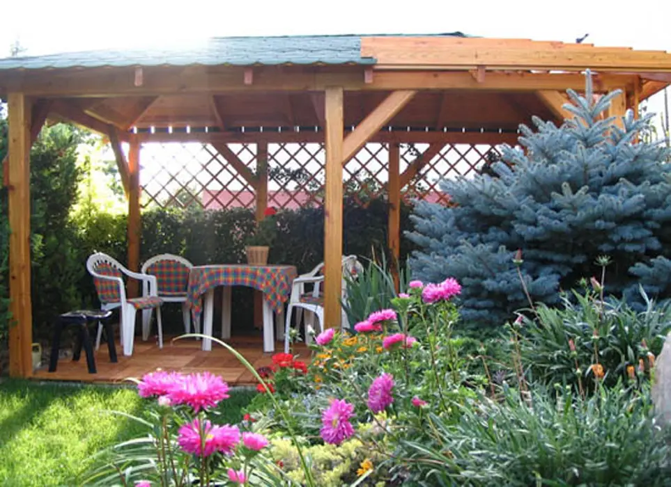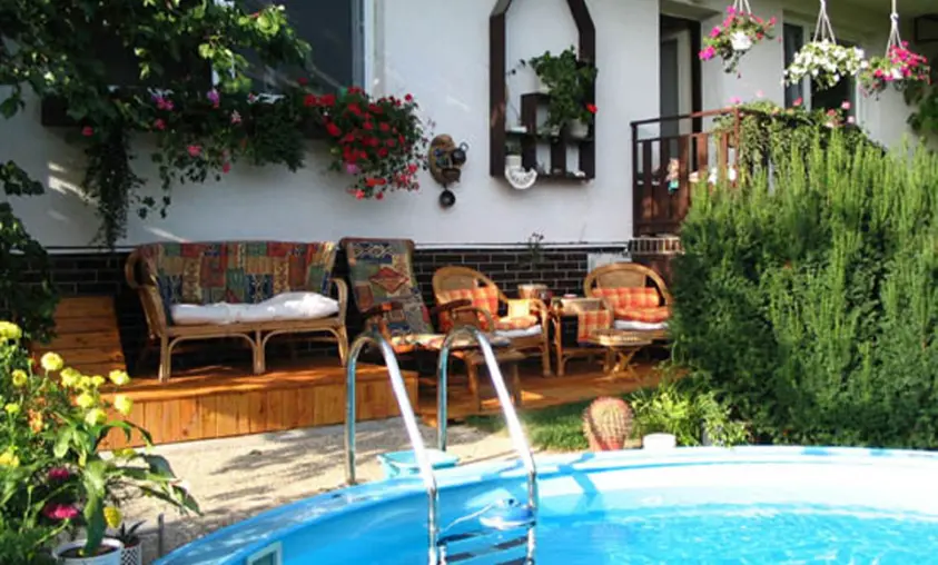 Venkovní kryté posezení, ohniště, pískoviště pro děti, bazén, dětský koutek