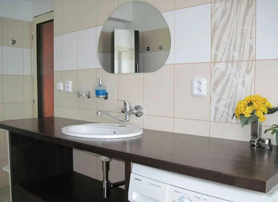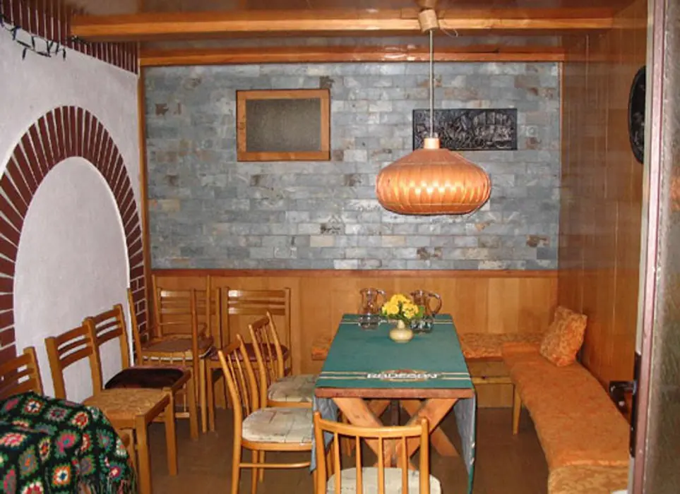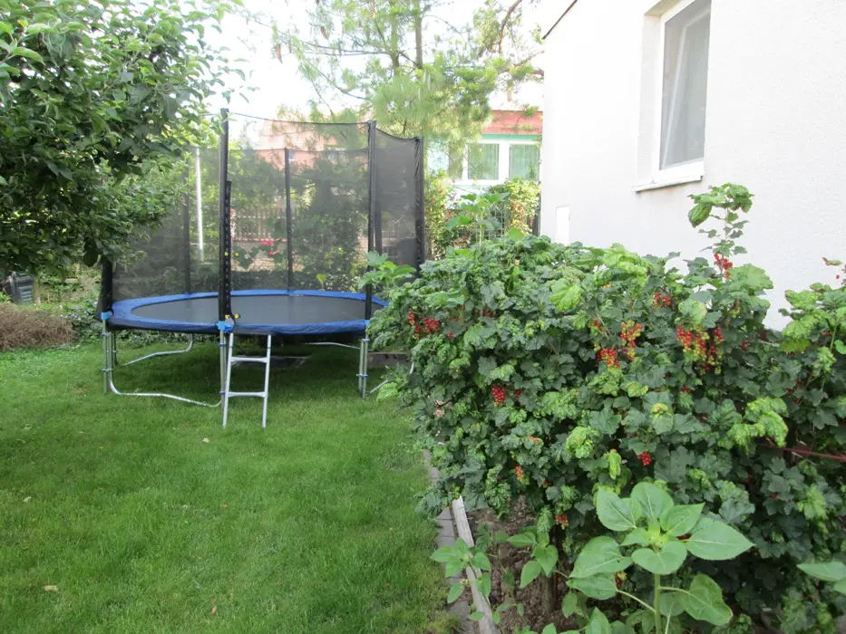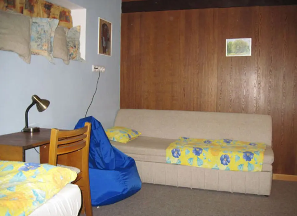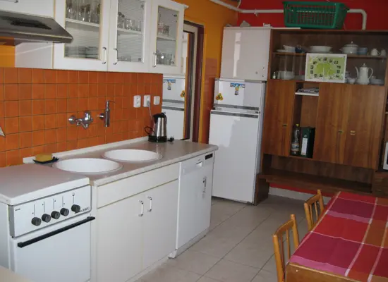 V přízemí: kuchyně s jídelnou - plyn. sporák, varná konvice, lednice, mikrovlnka, základní nádobí. 3 ložnice - 2x3, 1x2 lůžka ( ve 3 pokojích TV ), možnost 2 přistýlek. K dispozici je dětská postýlka a ohrádka ven na zahrádku. Koupelna s vanou, 2x samostatné WC. Topení ústřední. Ve sklepě malý sklípek s posezením, sauna
