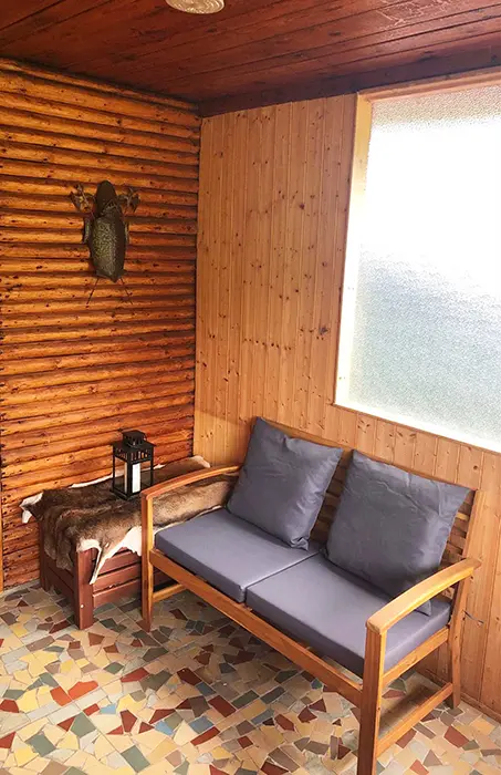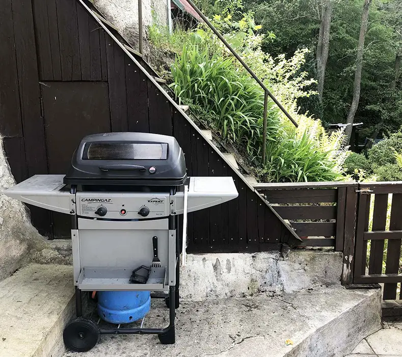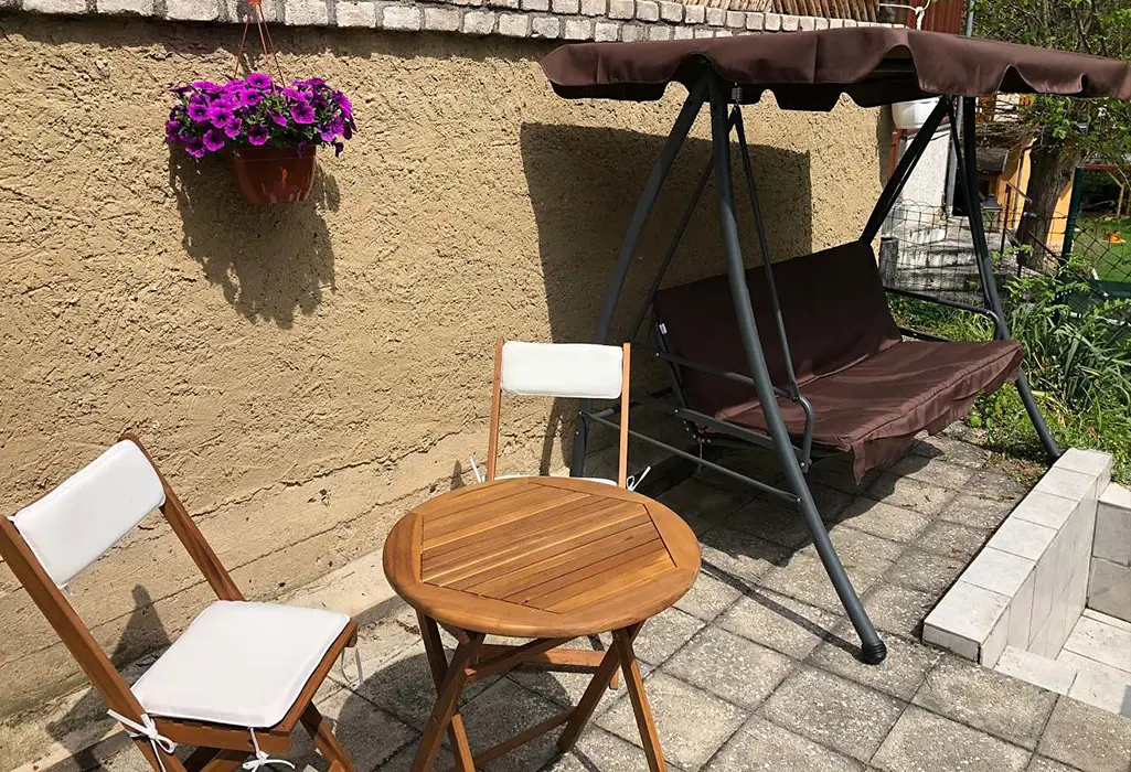 Krytá veranda, terasa s posezením, plynový gril, ohniště, solární sprcha, zahradní houpačka