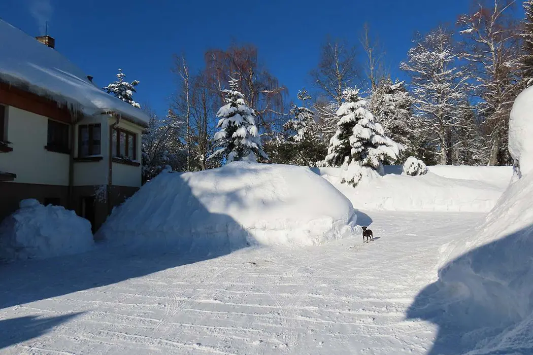 200 m lyžařský areál s 5 vleky, 2 sjezdovky jsou delší něž 1000 m, večerní lyžování, dětské vleky, areál Zadov-Churáňov 6 km. Běžecké tratě Nové hutě - Zadov - Kvilda - Borová Lada - 150 km upravených tratí - mnohé začínají v bezprostřední blizkosti apartámu