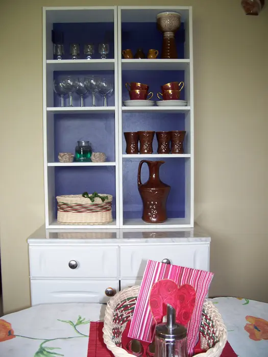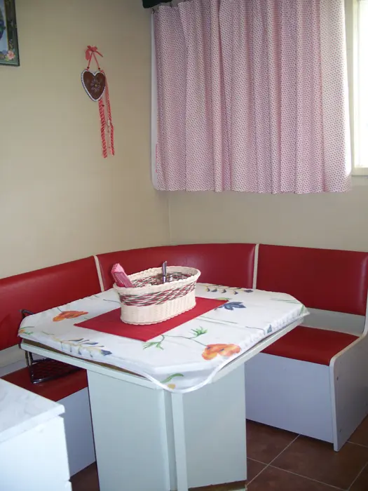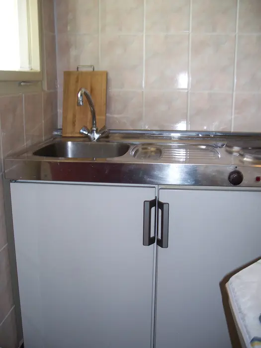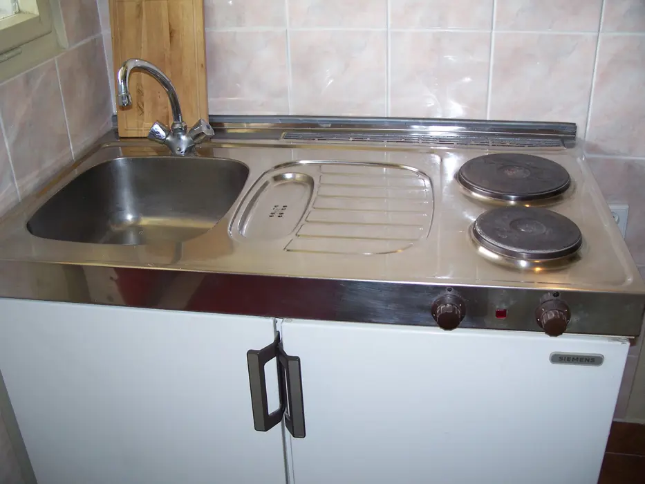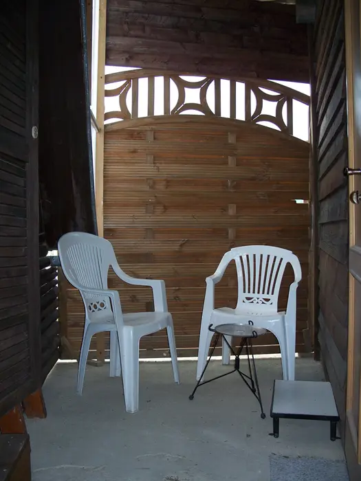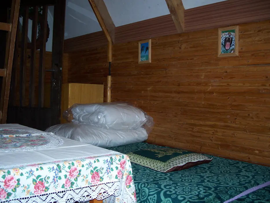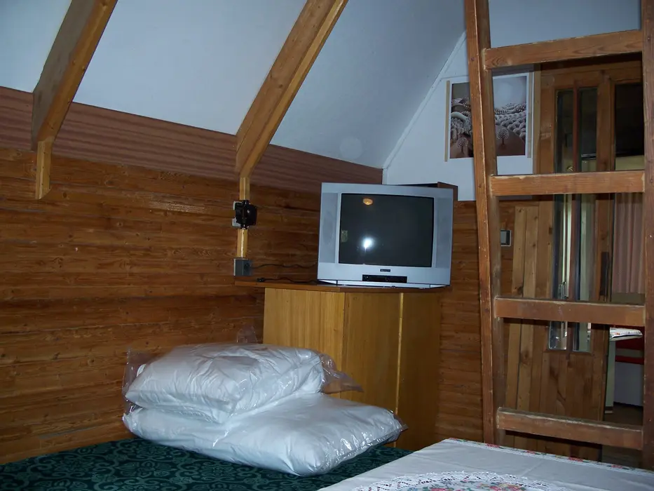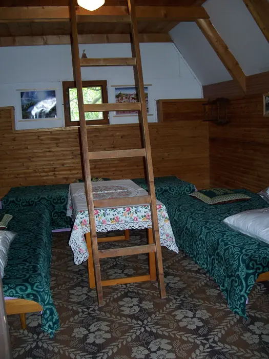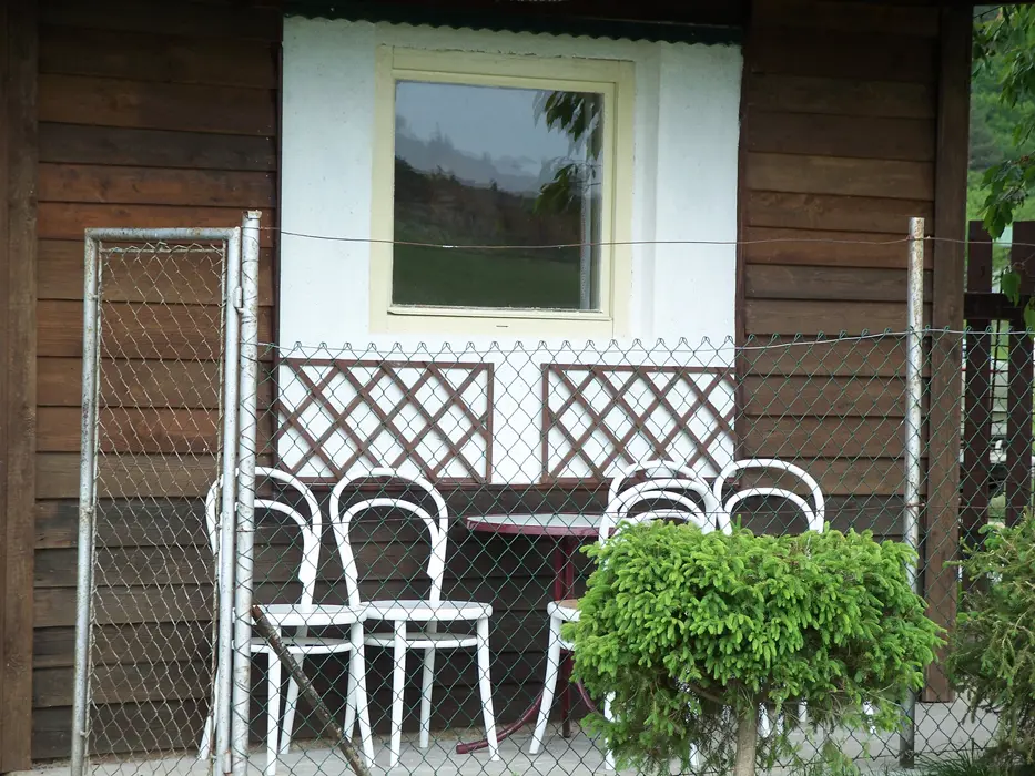Malá chatka na zahradě majitele - samostatná kuchyňka - el. vařič, varná konvice, teplá a studená voda, nádobí, lednice, na požádání u majitele mikrovlnka, rohová lavice a jídelní stůl. 1 ložnice - stolek, TV, 3 samostatná lůžka v přízemí, po žebříku do špice chaty 2 lůžka vedle sebe. Koupelna se sprchou, umyvadlem a WC. Malá chodbička s posezením. Topení - el. přímotopy.