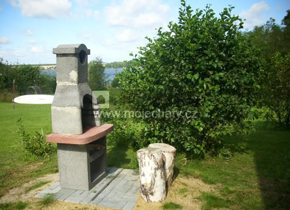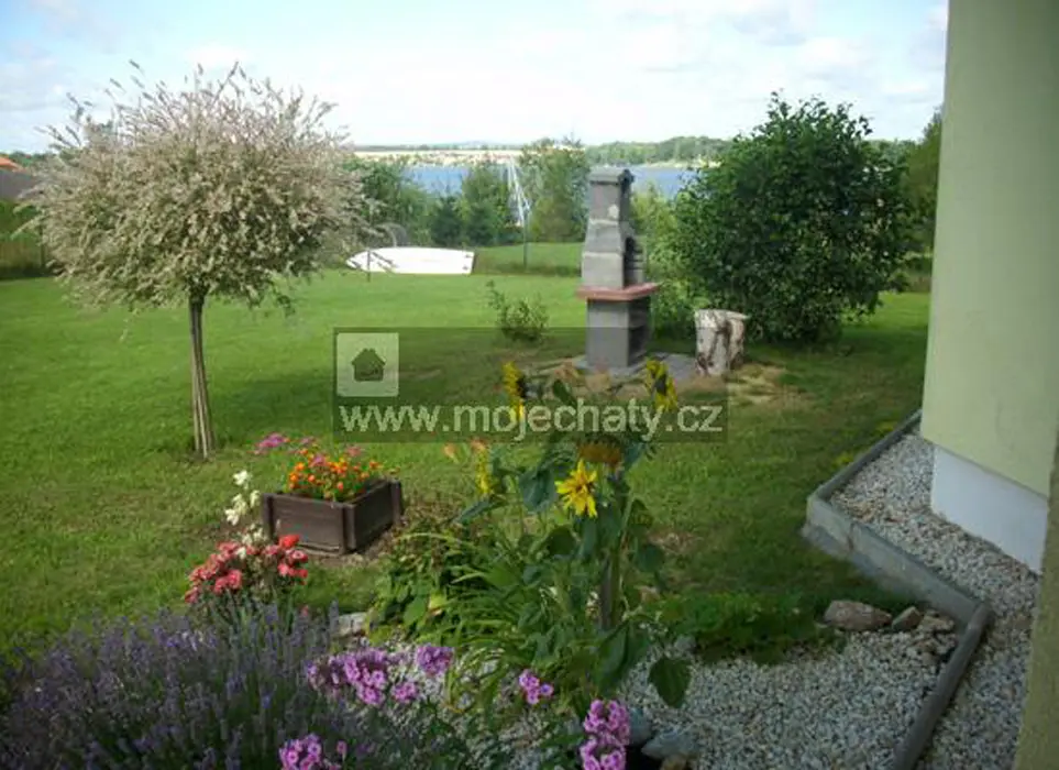 Posezení se zahradním nábytkem, venkovní krb a prostorná upravená zahrada s výhledem na vodní plochu nově kurzy windsurfingu, jízdy na kajaku a kanoi a také zapůjčení za poplatek a půjčení 2 ks jízdních kol