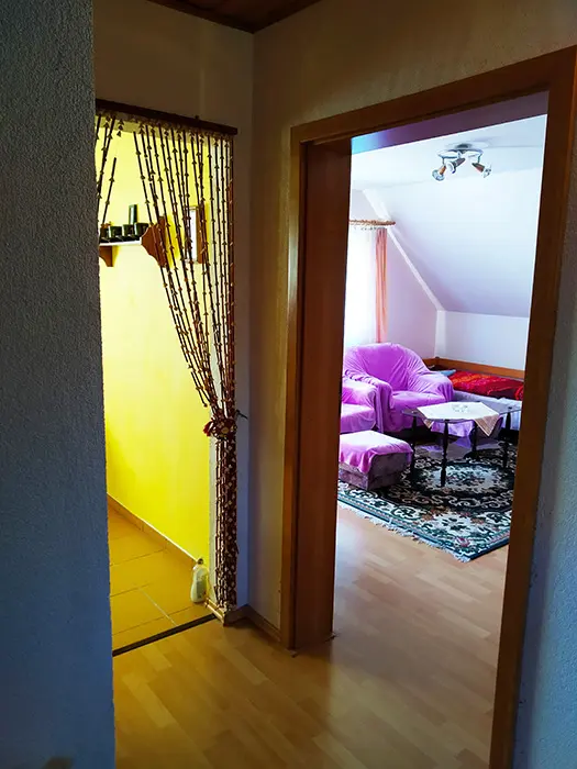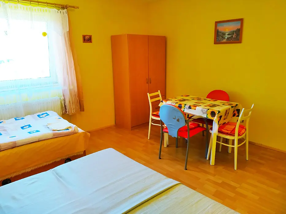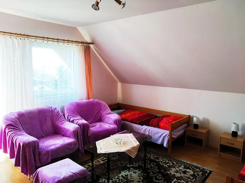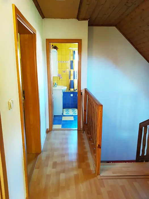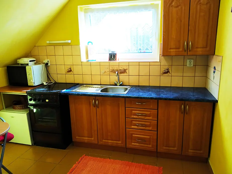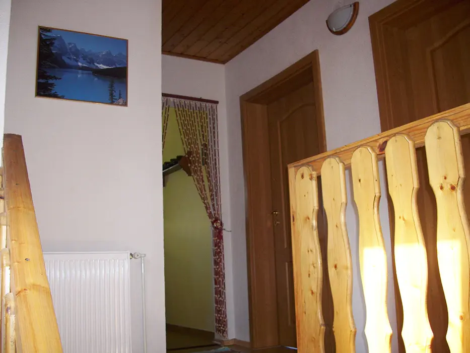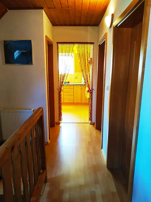 Pronajímá se patro - přízemí - občas může být majitel. Kuchyně - el.sporák a plynový vařič, stůl a židle, varná konvice, mikrovlnka, lednice, základní nádobí. 2 ložnice 2x2 lůžka. Koupelna se sprchou a vanou + WC. Topení ústřední na tuhá paliva.