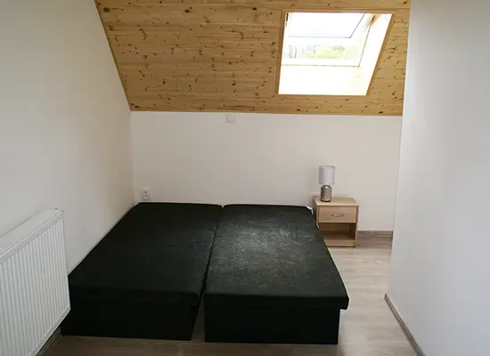 PŘÍZEMÍ: bezbariérové, obývací pokoj s posezením, rozkládací gauč - možnost 1 přistýlky, vybavený kuch. kout. 3 ložnice - v přízemí 1x2, v patře 1x2, 1x3 lůžka. Soc. zařízení - v přízemí - bezbariérové - sprchový kout, WC, v patře - vana, sprcha, WC. Topení - el. přímotopy
