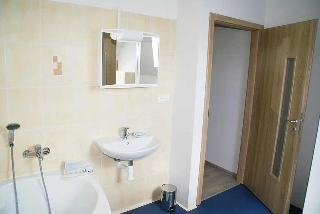 Dům je rozdělený na 2 části - možné pronajmout jako celek nebo jako 2 apartmány - společná předsíň, ale každý má svůj vlastní samostatný vchod a vstup na terasu