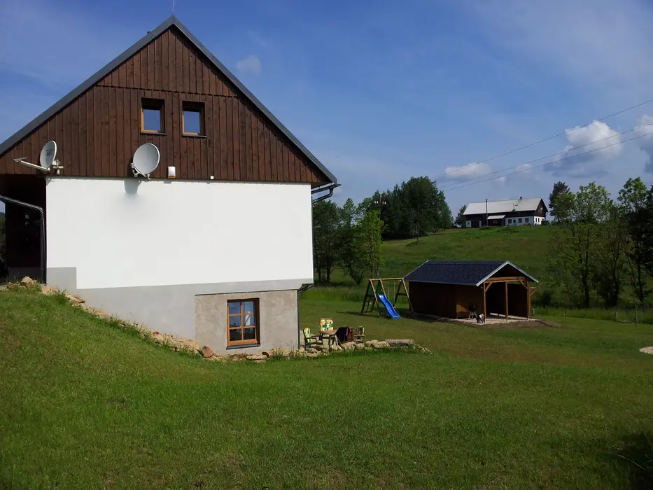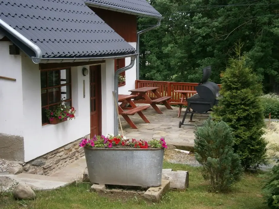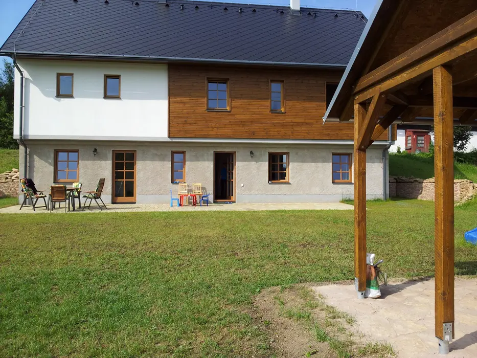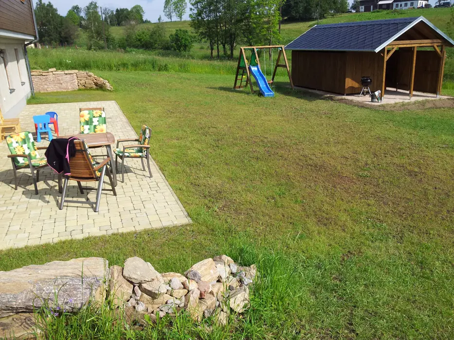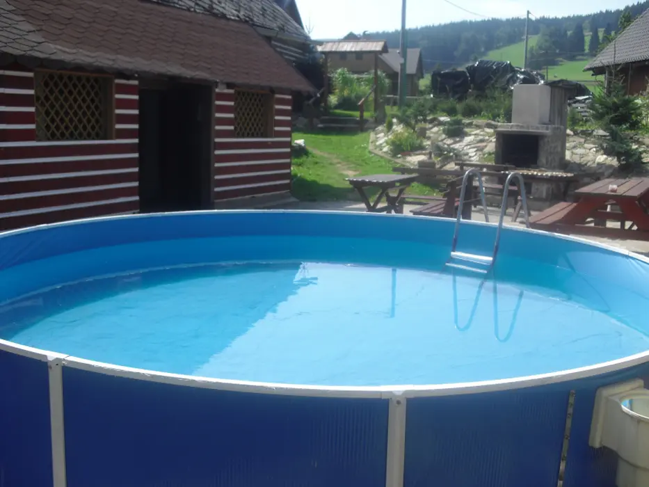 Venkovní ohniště, krb s udírnou, posezení na terase, gril, dětský koutek (houpačka, pískoviště, dřevěné autíčko), bazén 3,6 m, stolní tenis, v zimě k dispozici lyžárna
