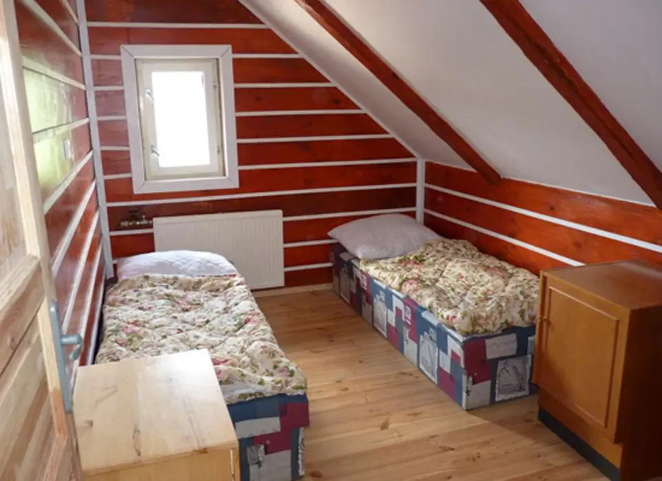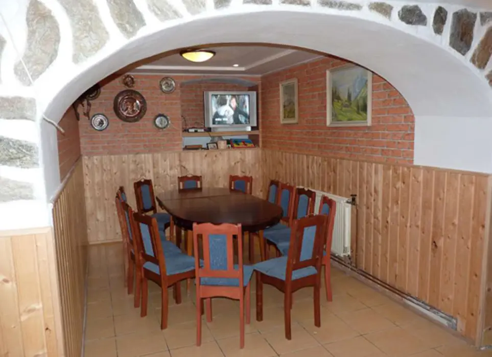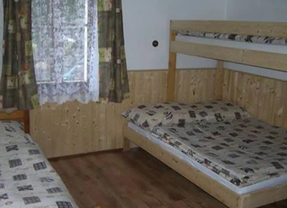 Samostatný vchod, velká společenská místnost s krbovými kamny, BTV+SAT, DVD, dětský koutek (skluzavka, stoleček, židličky, hračky), pro miminka jsou k dispozici 2 dětské postýlky a židličku. Kuchyně - el. sporák, lednice, varná konvice, mikrovlnka, základní nádobí. 4 ložnice 1x2, 3x4 lůžka (z toho 2xpalanda). 2 čtyřlůžkové pokoje mají vlastní sprchu, jeden čtyřlůžkový + dvoulůžkový mají sprchu společnou + 3 x WC na chodbě.