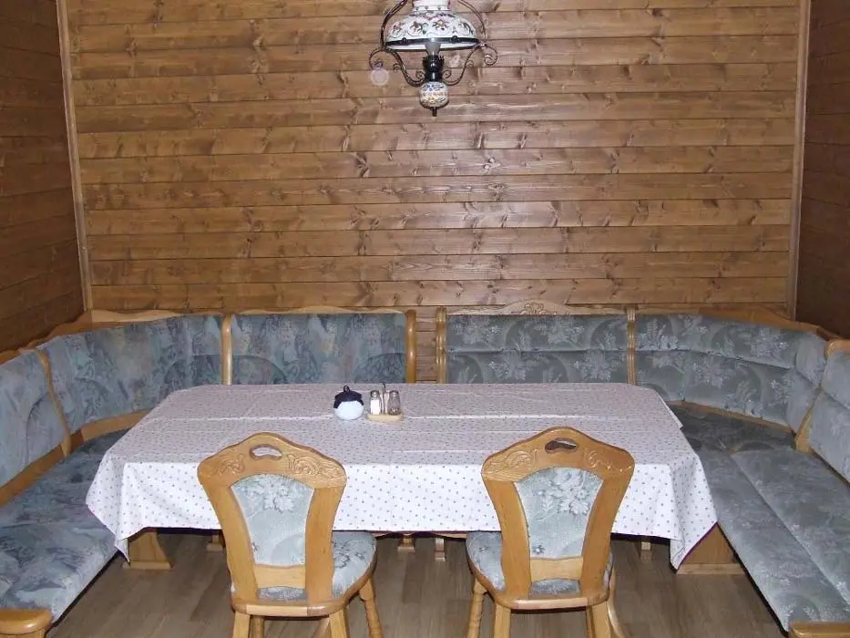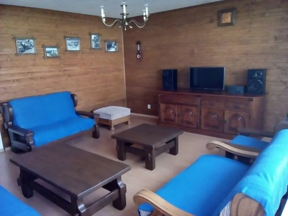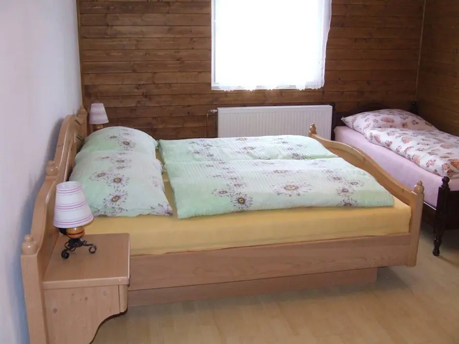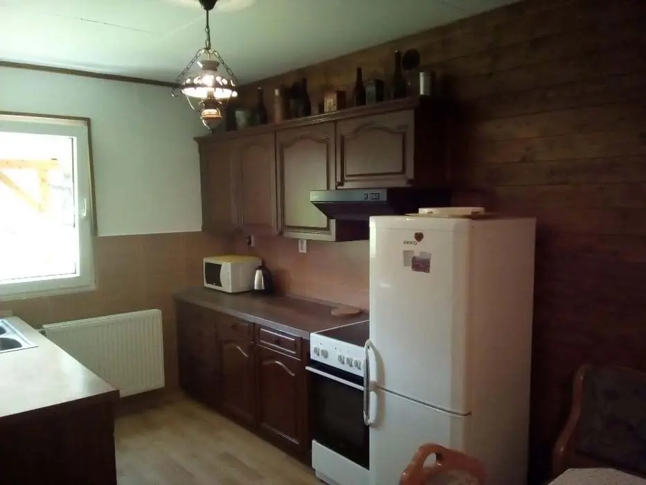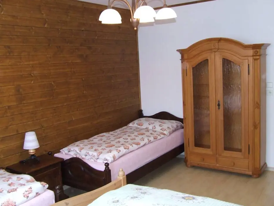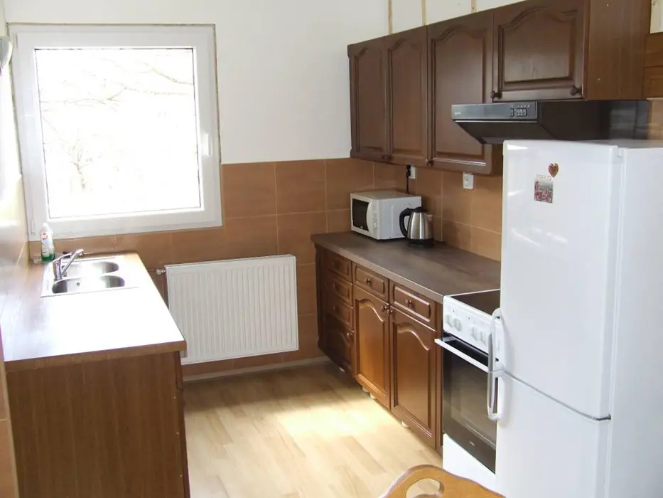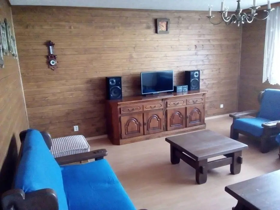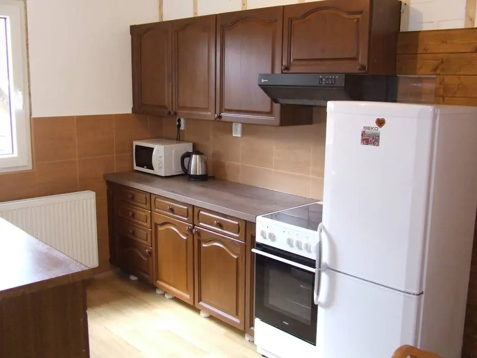 Obývací pokoj - samostatný, sedací souprava, TV. Kuchyně - varná deska, trouba, mikrovlnná trouba, rychlovarná konvice, myčka nádobí, lednice s mrazákem, nádobí pro 8 osob. 3 ložnice - 2x2, 1x4 lůžka, dětská postýlka. Sociální zařízení - 1x prostorná koupelna s vanou a vanovou zástěnou, umyvadlo, zrcadlo, WC, skříň, 1x samostatné WC. Topení - elektrické