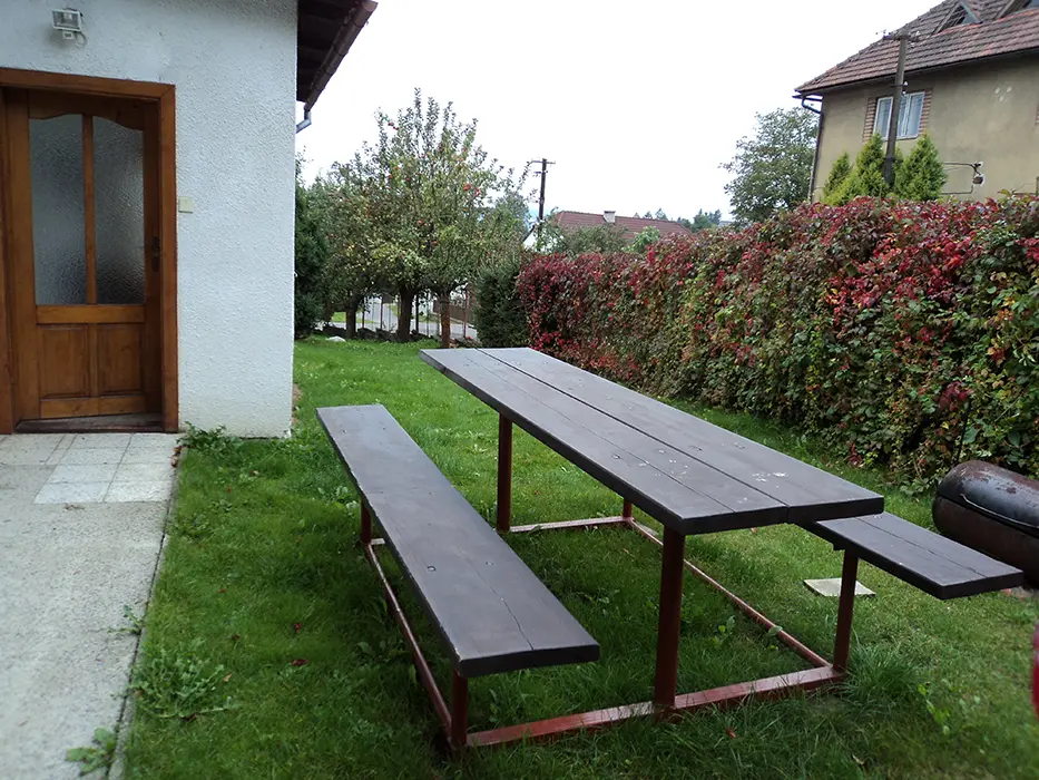 Venkovní lavičky, malé ohniště s posezením, zahrada, malý gril