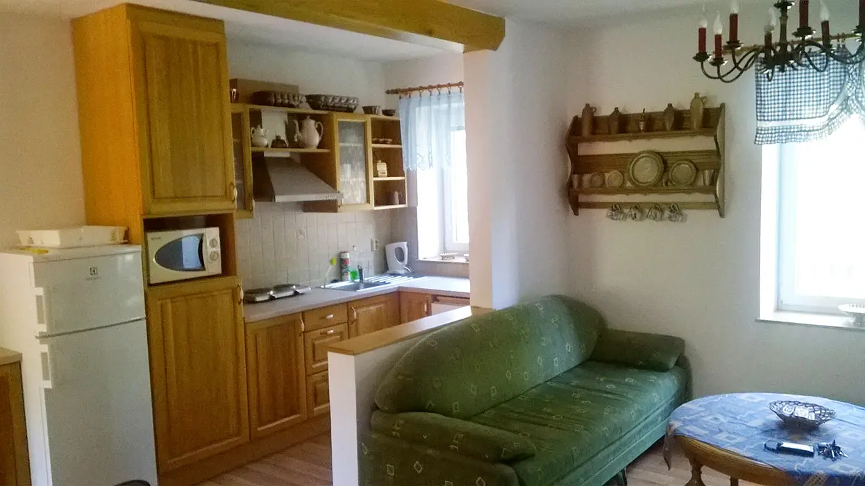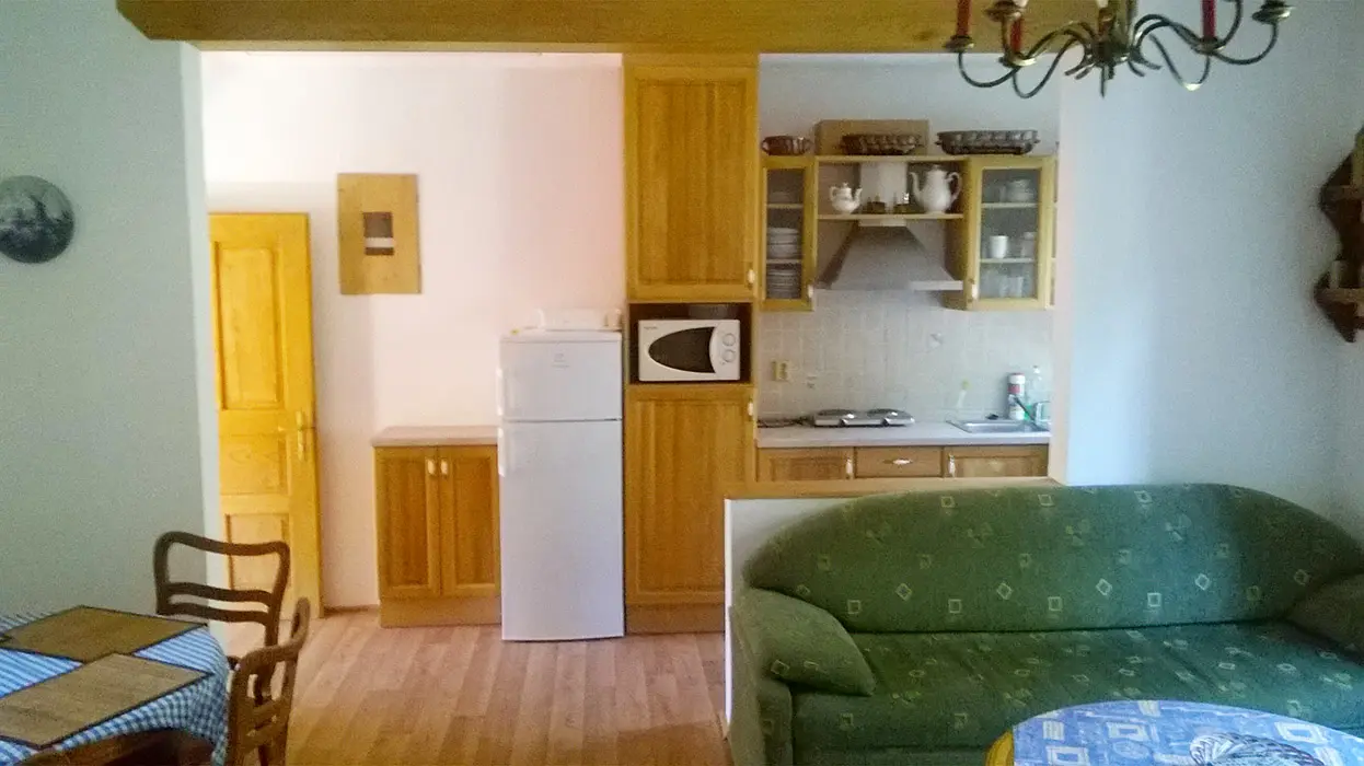 Je možné pronajmout i apartmán - 7.100 Kč/týden v červenci a srpnu - tento je k dispozici pouze v případě vyššího počtu osob a jako doplněk k části chalupa, pokud nebude obsazen - je uzamčen a nepronajímá se další skupině