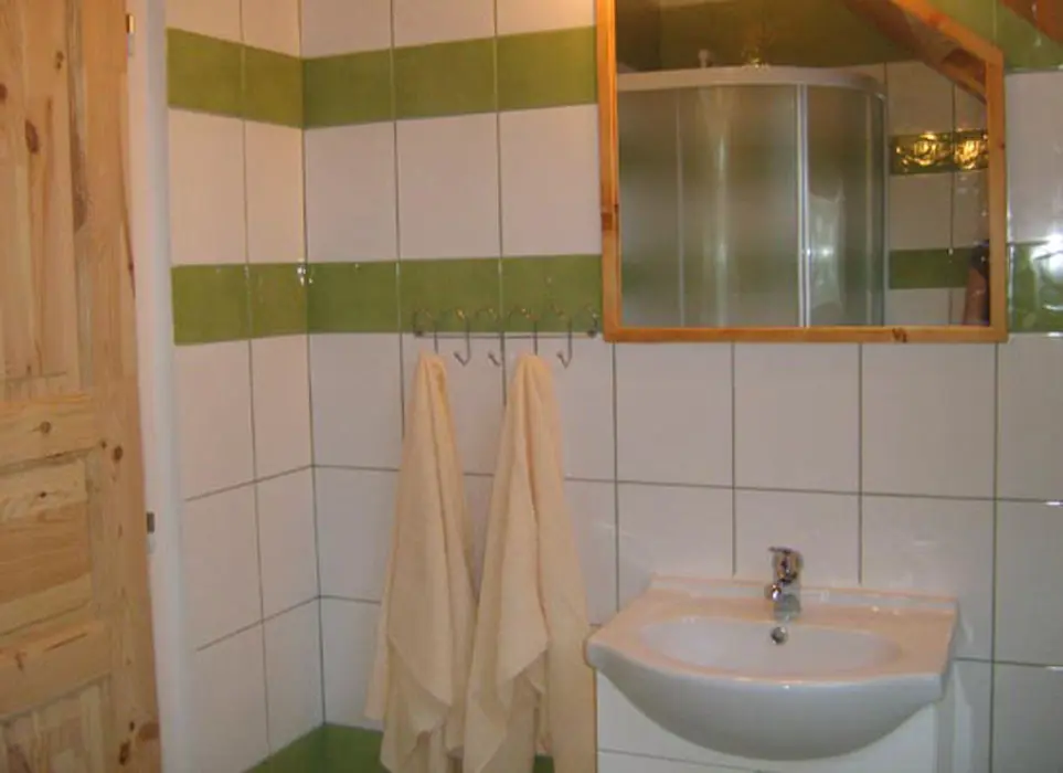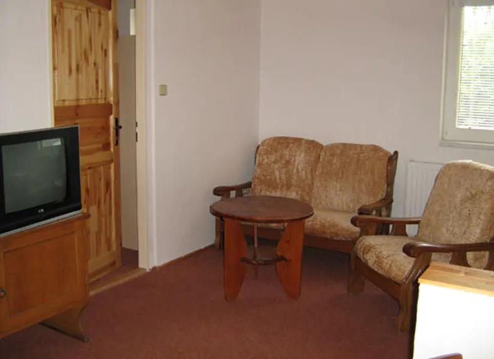 Vybavený kuchyňský kout - lednice, elektrická trouba s vařičem, varná konvice, nádobí, obývací pokoj s jídelním stolem, posezení, TV. 1 ložnice 1x3 lůžka, dětská postýlka. Soc. zařízení - koupelna se sprchou a WC. Topení - centrální