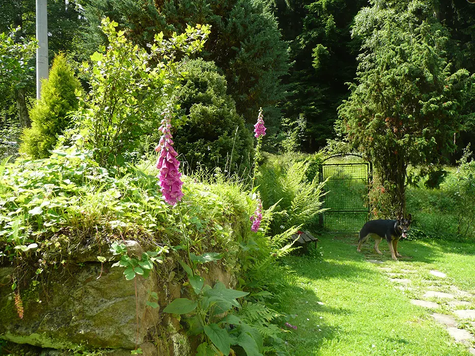 11 km Vimperk, uprostřed lesa v sousedství třech domů cca 1 km od vísky Račov, v těsné blízkosti protéká lesní potůček, oddělující les od oplocené zahrady