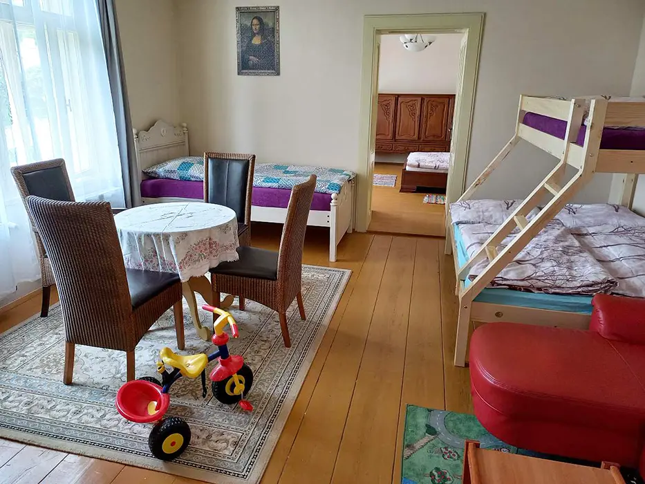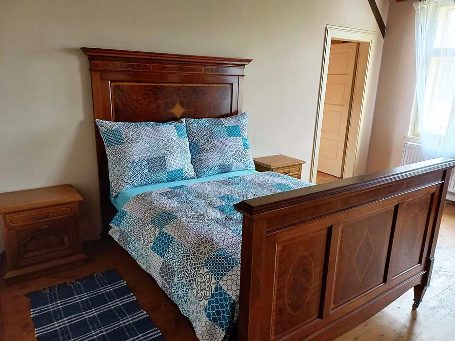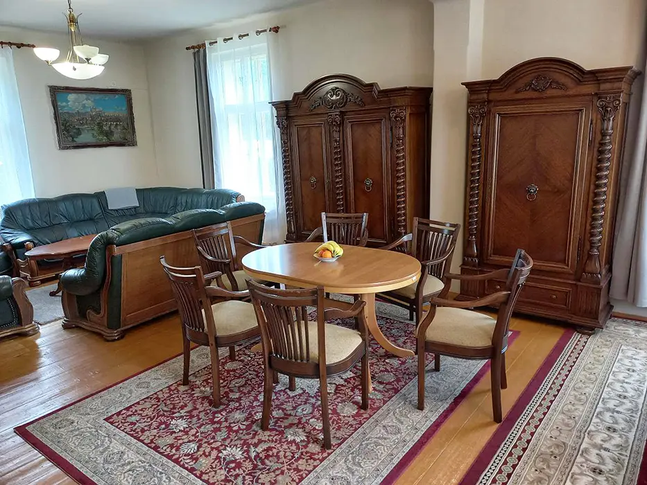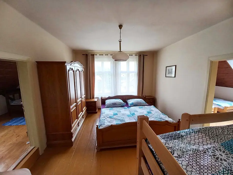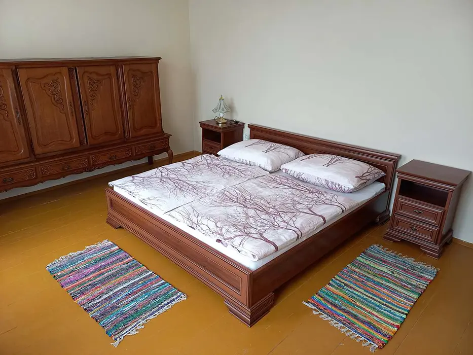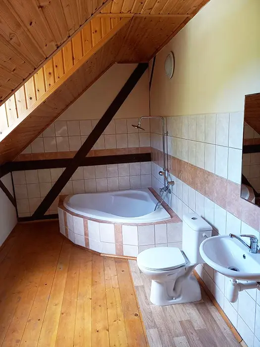 PŘÍZEMÍ: prostorný obývací pokoj - sedací soupravy, LCDTV, jídelní stoly a židle. Plně vybavená kuchyně - varná deska, trouba, myčka, 2 lednice, mikrovlnka, kávovar DeLonghi (mletá káva), varná konvice, toustovač, nádobí. 2 ložnice - 1x2, 1x4 lůžka ( tyto jsou průchozí ). PATRO: 6 ložnic - 4x2, 1x3, 1x4 lůžka. Soc. zařízení - koupelna s vanou + WC, sprchový kout, 6x samostatné WC. Topení - tepelné čerpadlo