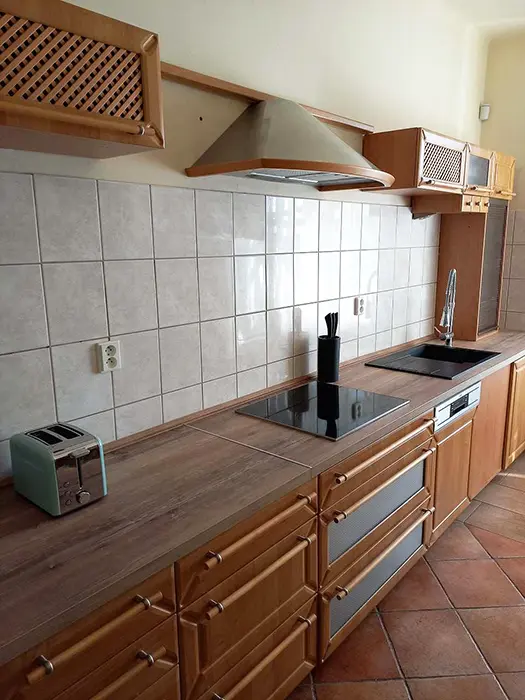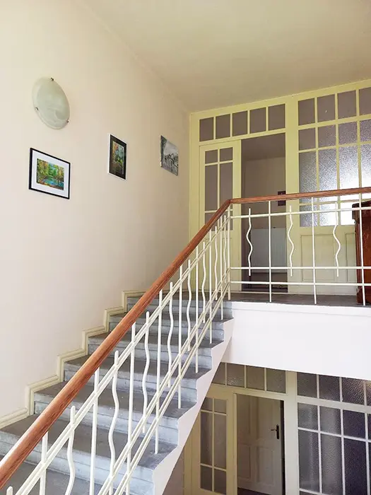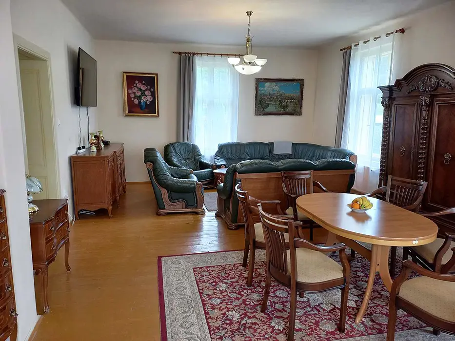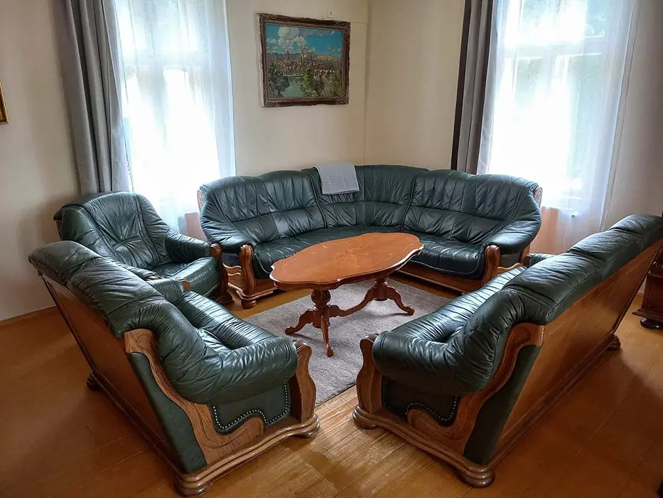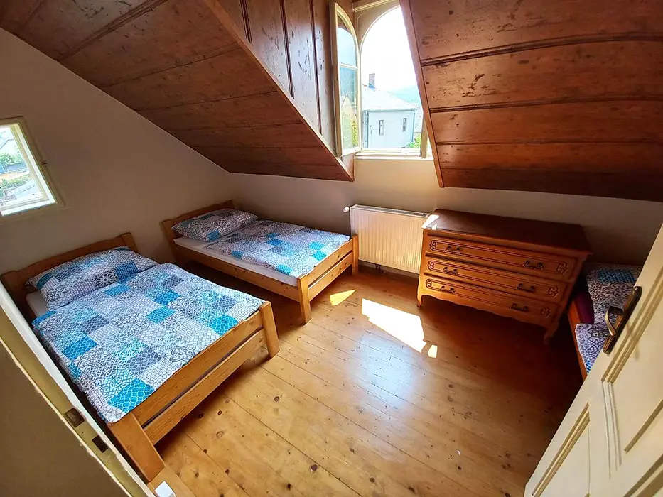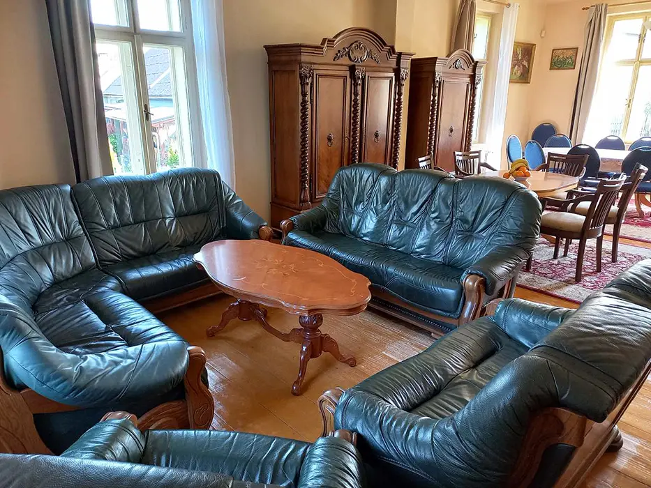 PŘÍZEMÍ: prostorný obývací pokoj - sedací soupravy, LCDTV, jídelní stoly a židle. Plně vybavená kuchyně - varná deska, trouba, myčka, 2 lednice, mikrovlnka, kávovar DeLonghi (mletá káva), varná konvice, toustovač, nádobí. 2 ložnice - 1x2, 1x4 lůžka ( tyto jsou průchozí ). PATRO: 6 ložnic - 4x2, 1x3, 1x4 lůžka. Soc. zařízení - koupelna s vanou + WC, sprchový kout, 6x samostatné WC. Topení - tepelné čerpadlo