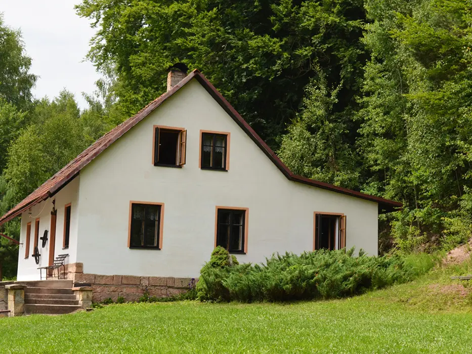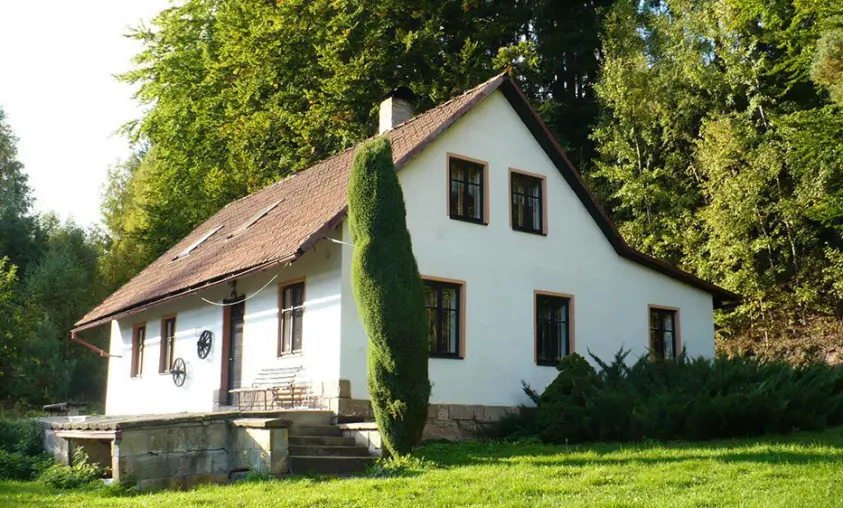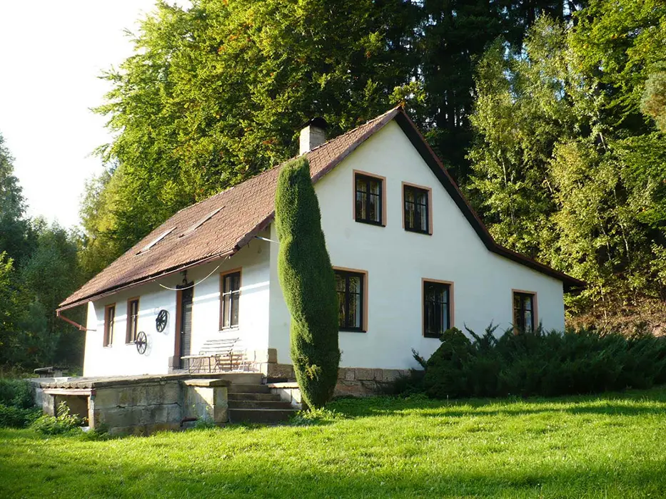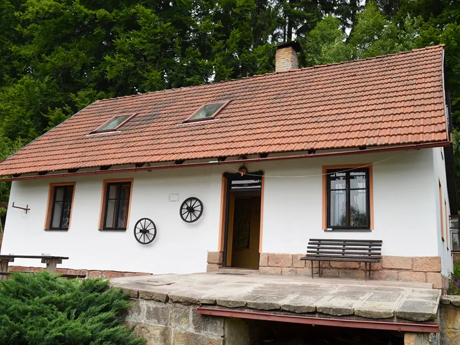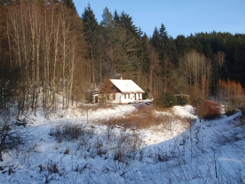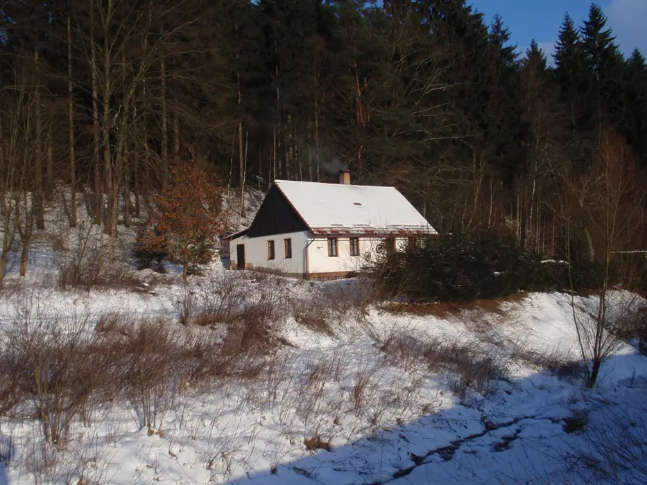 U chalupy, v případě dobrých sněhových podmínek v zimě doporučujeme sněhové řetězy /horší příjezdová cesta