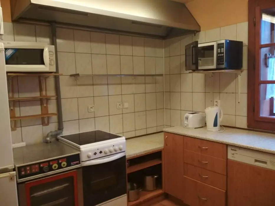 V přízemí - obytná část s posezením, krbová kamna, TV, navazuje kuchyně - el. sporák s troubou, mikrovlnka, myčka nádobí a lednička s mrazákem, nádobí, výčepní zařízení - pípa + chladnička na nápoje ( TATO ČÁST JE V OBDOBÍ CCA BŘEZEN - ČERVEN + ZÁŘÍ - ŘÍJEN - UZAVŘENA PRO UBYTOVANÉ HOSTY - SLOUŽÍ JAKO RYBÁŘSKÁ BAŠTA ).