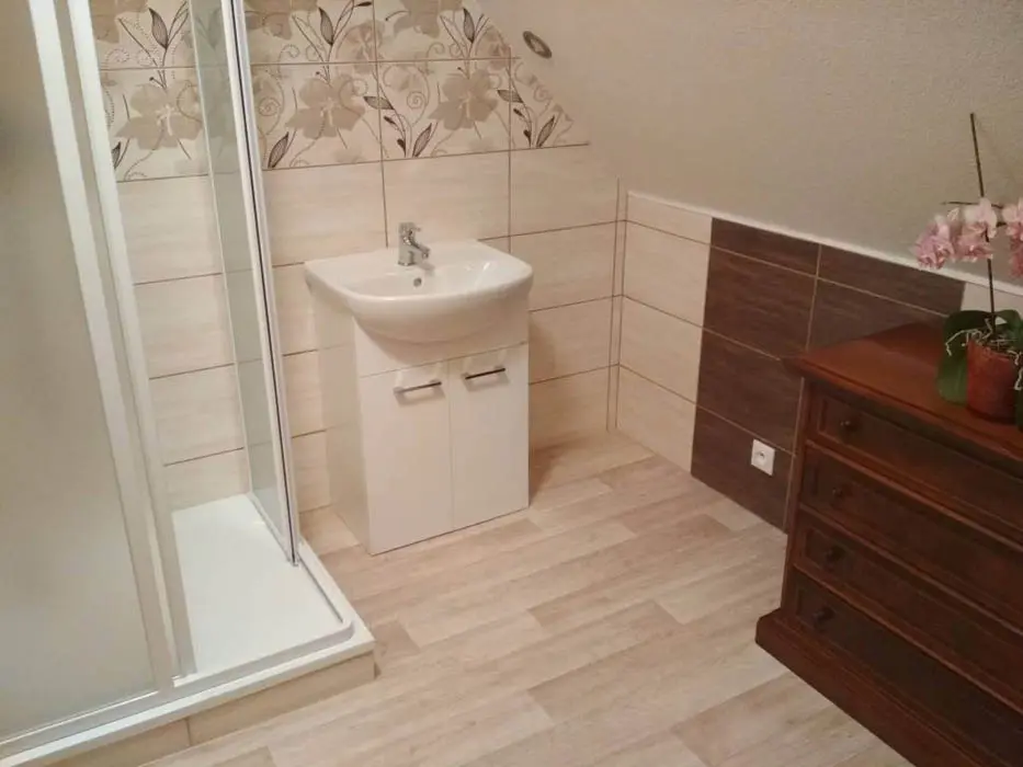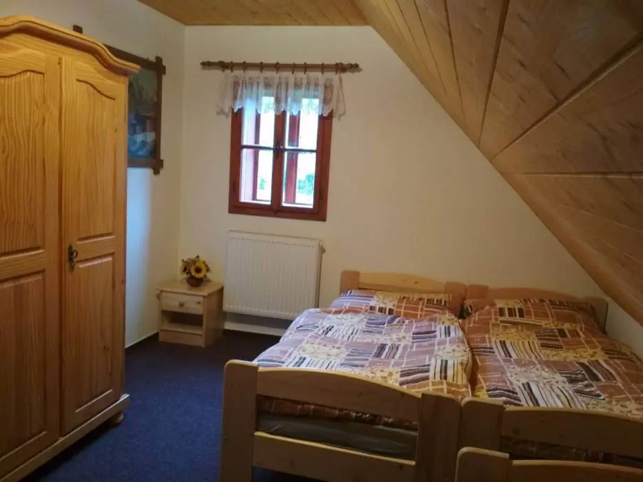 V podkroví 3 ložnice - 3x3 lůžka, k dispozici dětská postýlka. Sociální zařízení - přízemí 2x samostatné WC, v podkroví - koupelna se sprchovým koutem a WC. Topení - elektrokotel + kachlová kamna