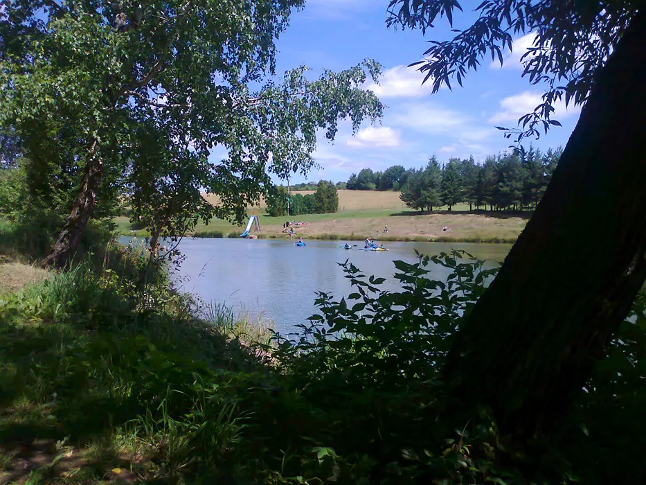 20 m, k rybníku je přístup na vlastním pozemku po schodech. K dispozici je pramice, 3 km Podomský rybník, 15 km Vyškov - aquapark