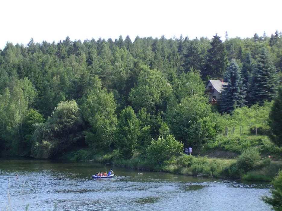 20 m, rybaření v rybníku je na povolenku MRS – mimo-pstruhový revír. Ryby se zabíjí pod terasou venku. Pro úlovky lze použít samostatný mražák v suterénu chaty ( O zarybněnost rybníku pečuje Moravský rybářský svaz. Platí mimopstruhová moravská povolenka.