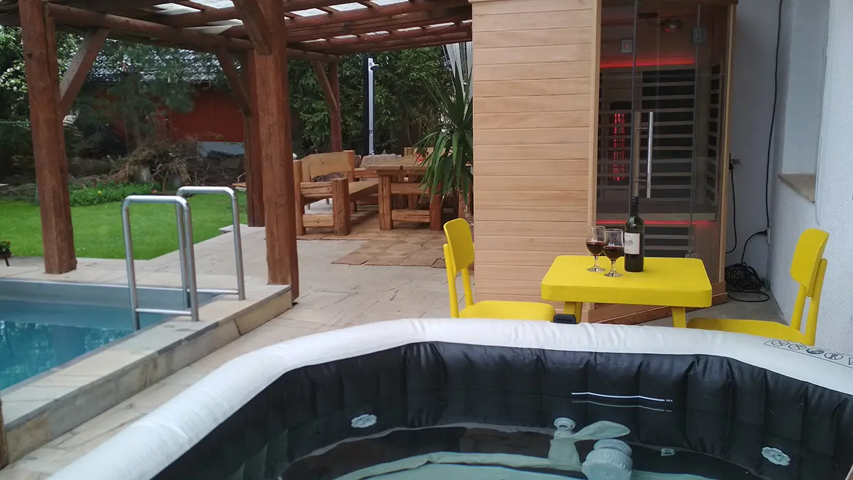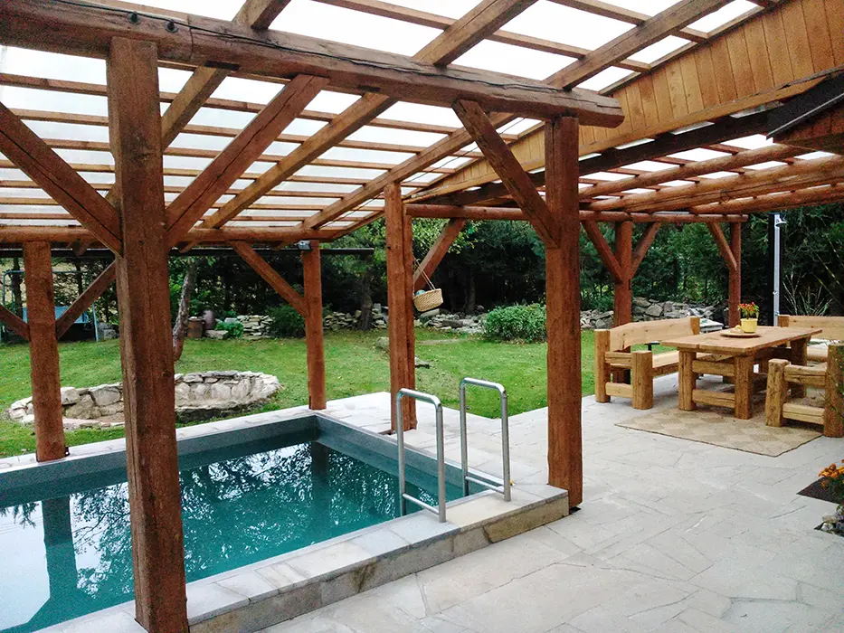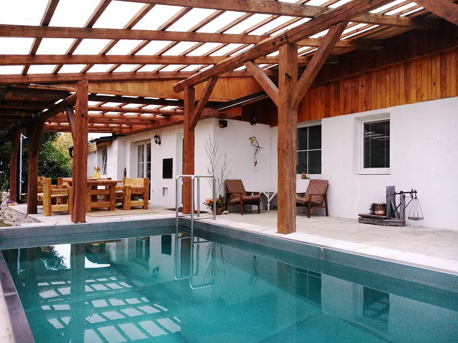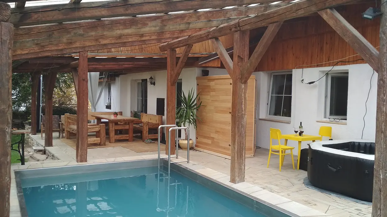 ANO - veliký zapuštěný bazén 3x7x1,5m - částečně krytý, s filtrací a solárním ohřevem