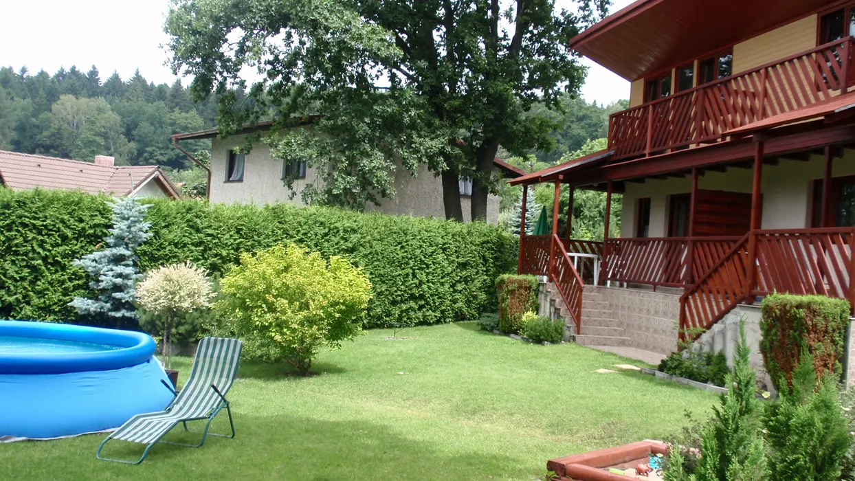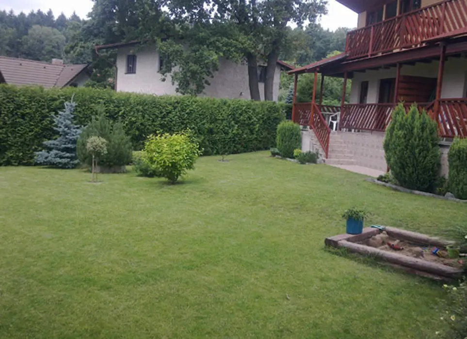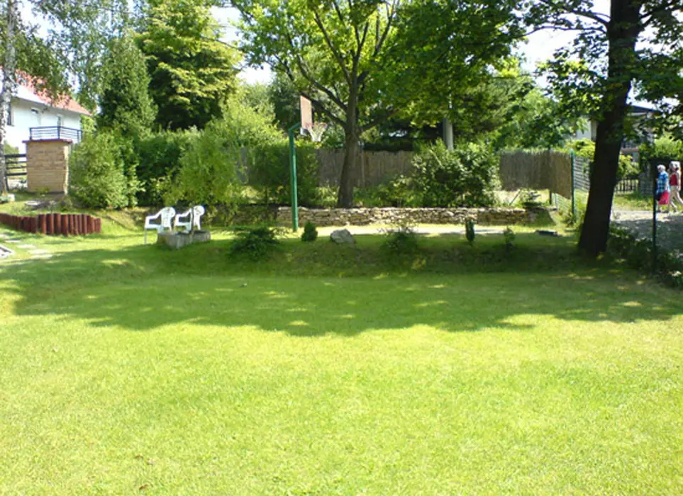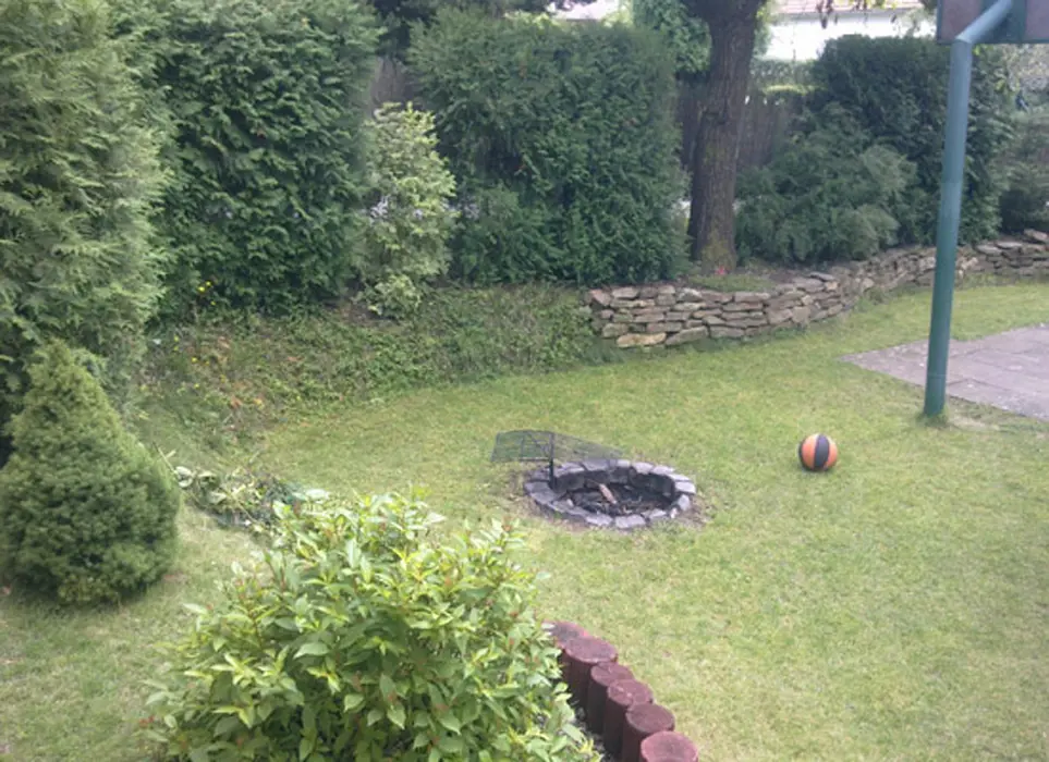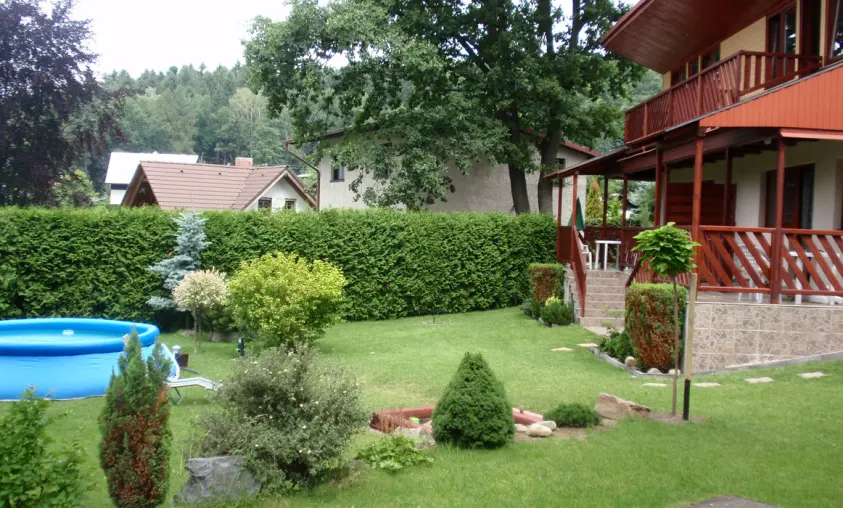Zahradní nábytek, ohniště, kryté sezení, bazén, pískoviště, menší hřiště, koš na basketbal