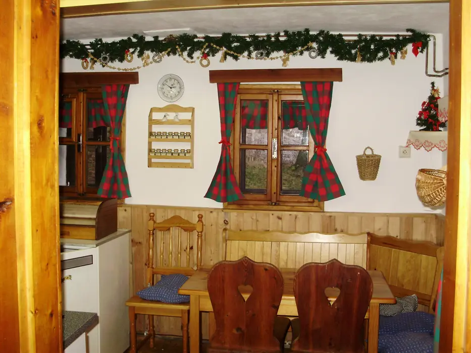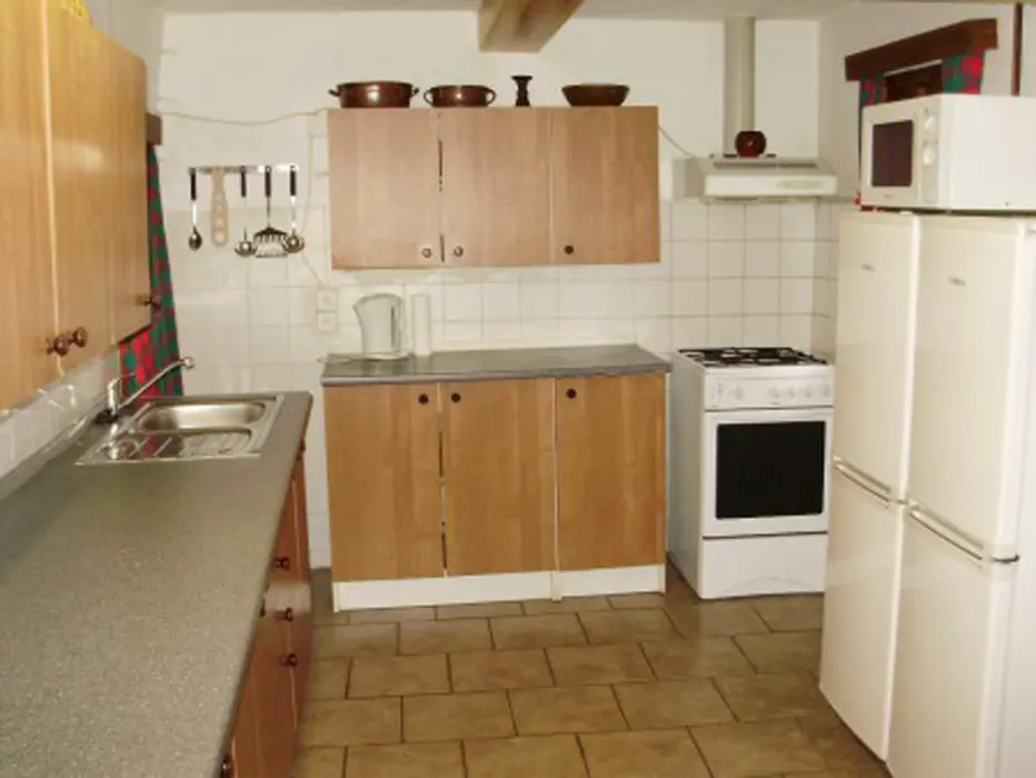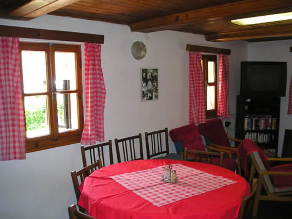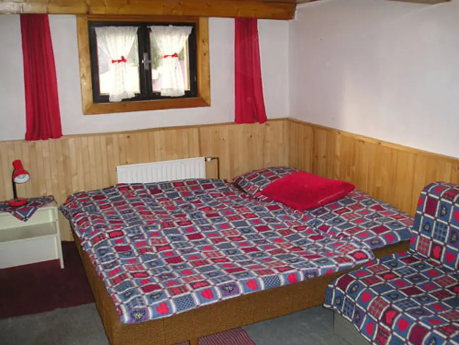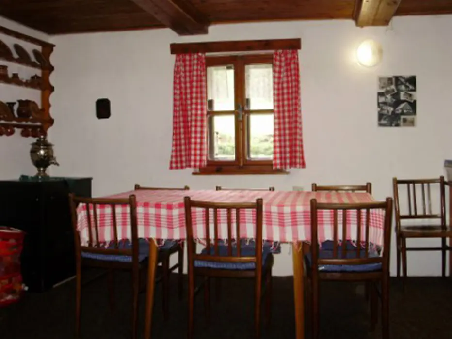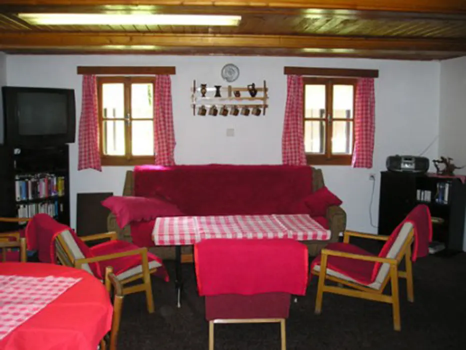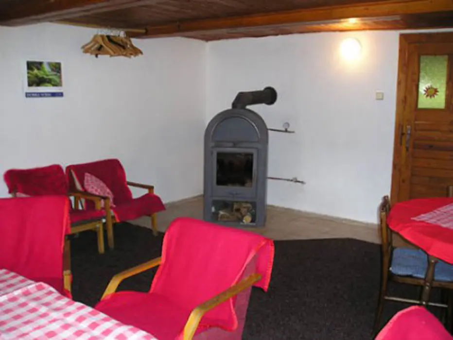 Obývací pokoj/společenská místnost - krb, který vytápí celou chalupu, LCD-TV, SAT, DVD, CD, rádio. Kuchyně - samostatná, 2x lednice s mrazákem, plynový sporák+trouba, mikrovlnná trouba, myčka, toustovač, rychlovarná konvice, jídelní stůl, židle. 4 ložnice 2x3, 2x4 lůžka. Sociální zařízení - 2x koupelna - samostatný sprchový kout, 2x samostatné WC. Topení - krbová kamna napojená na ústřední topení, v zimních měsících lze použít el.radiátory na přitápění.