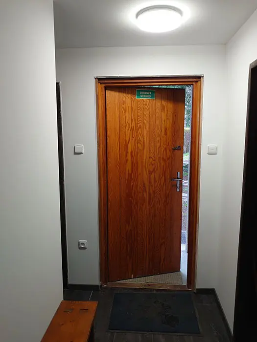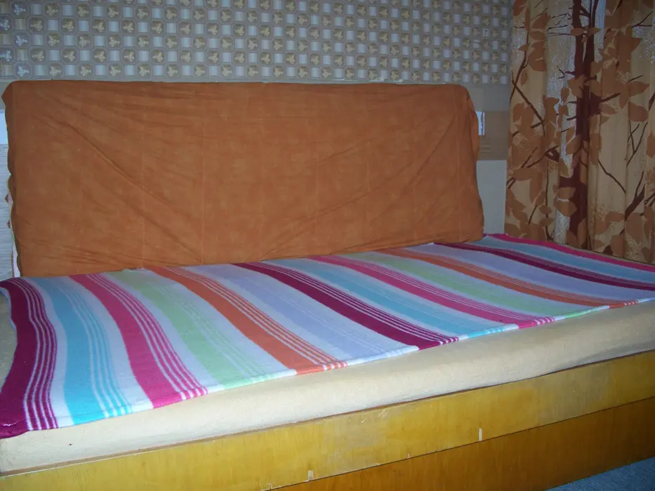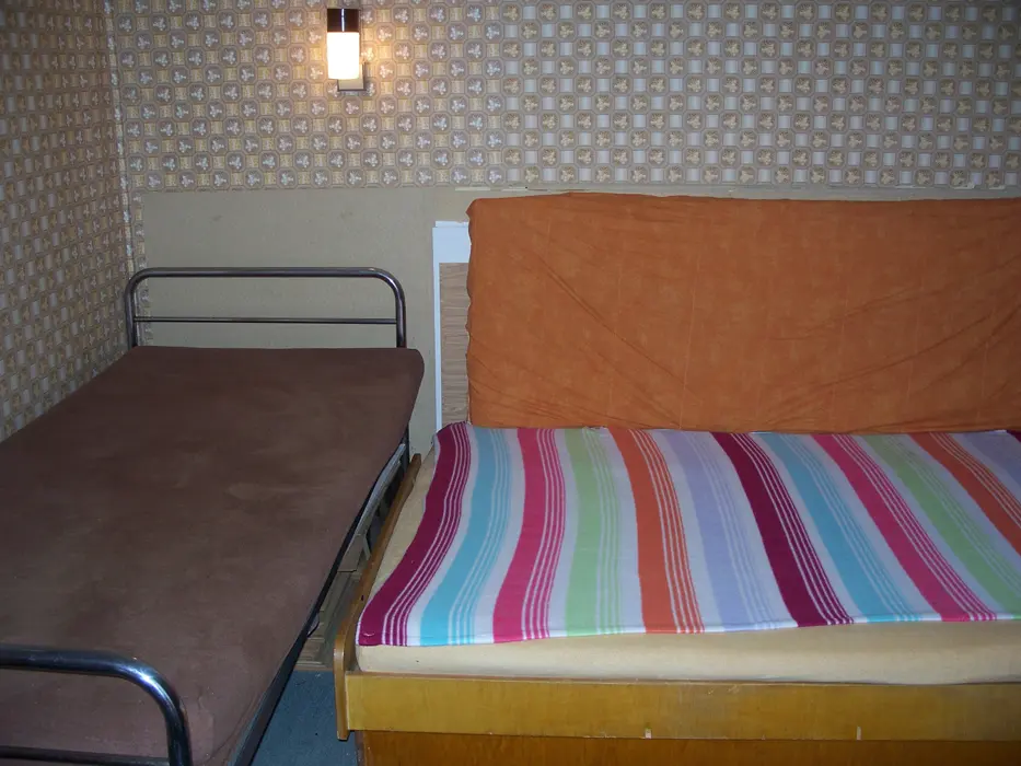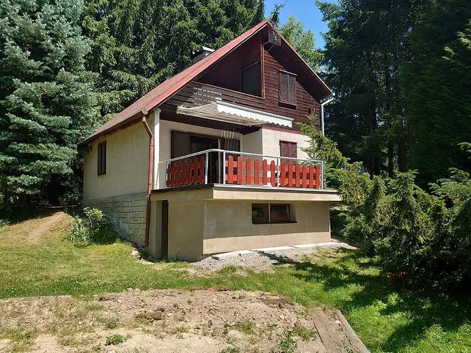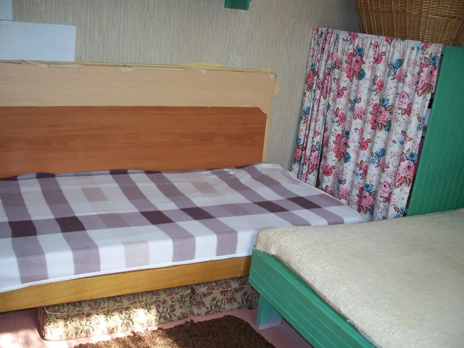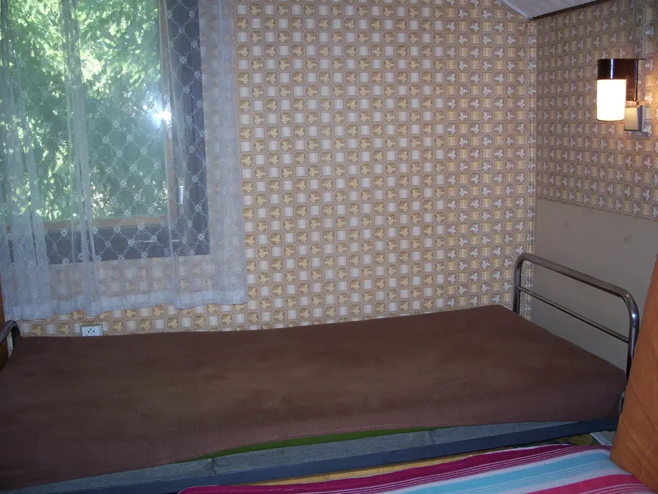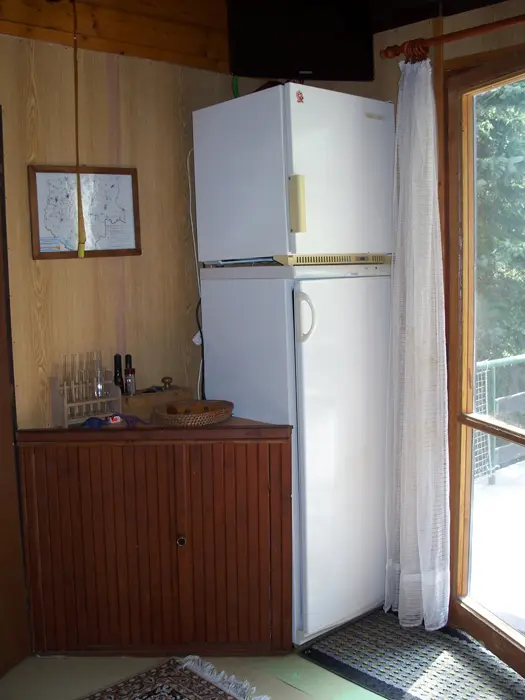 V přízemí obývací pokoj s posezením, TV, vstup na terasu s posezením. Kuchyně - el. dvoukolový vařič, mikrovlnka, lednice, varná konvice, nádobí. 3 ložnice - v přízemí 1x2 lůžka, v patře - 2x1 + 1,5 rozkládací lůžko. V oknech sítě proti hmyzu. Soc. zařízení - koupelna se sprchou, samostatné WC. Topení - tuhá paliva + elektrické přímotopy