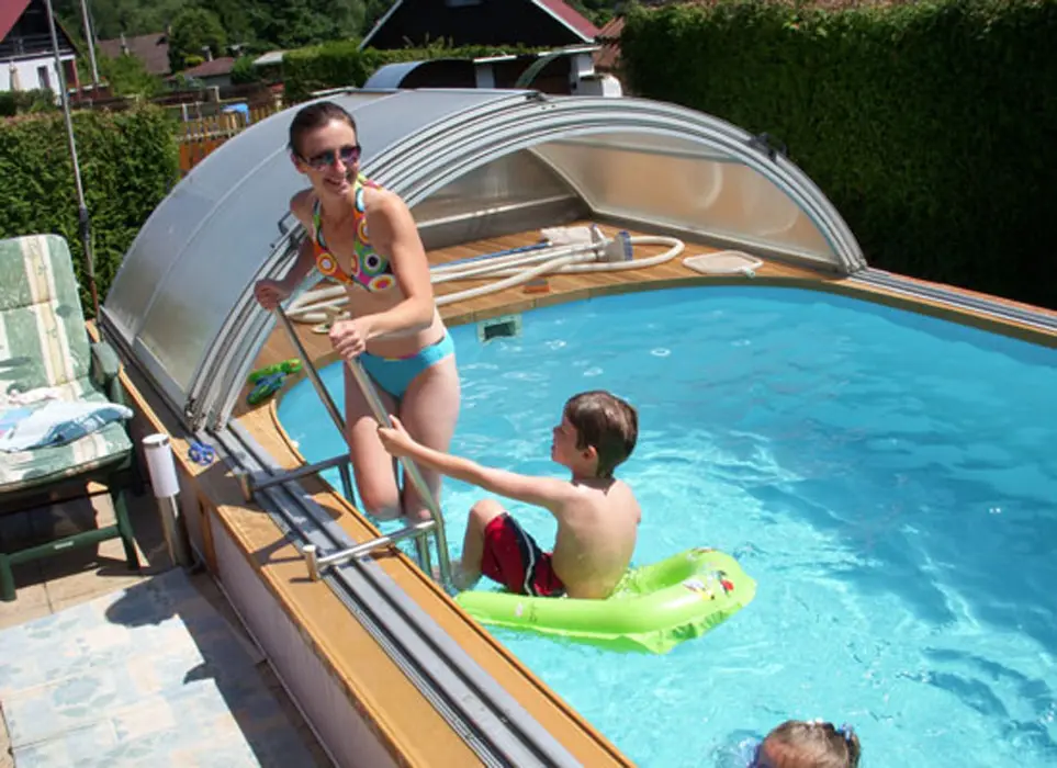 Zahradní altán 3x3 m s nábytkem, krytý zapuštěný bazén 5 x 2,5 x 1,4 m s mořskou vodou, venkovní ohniště + gril a udírna