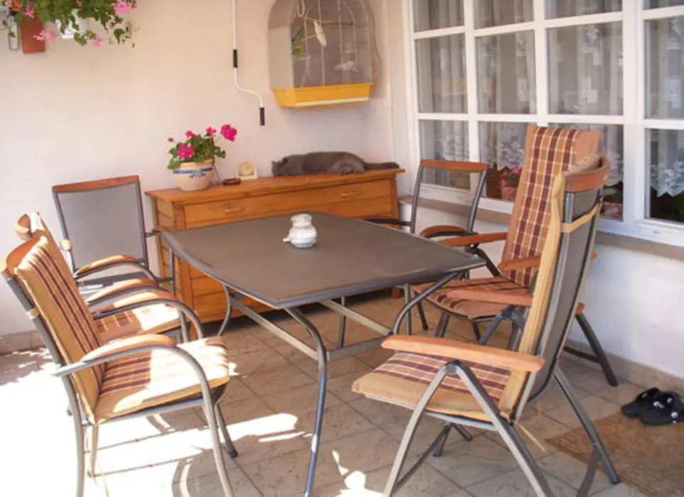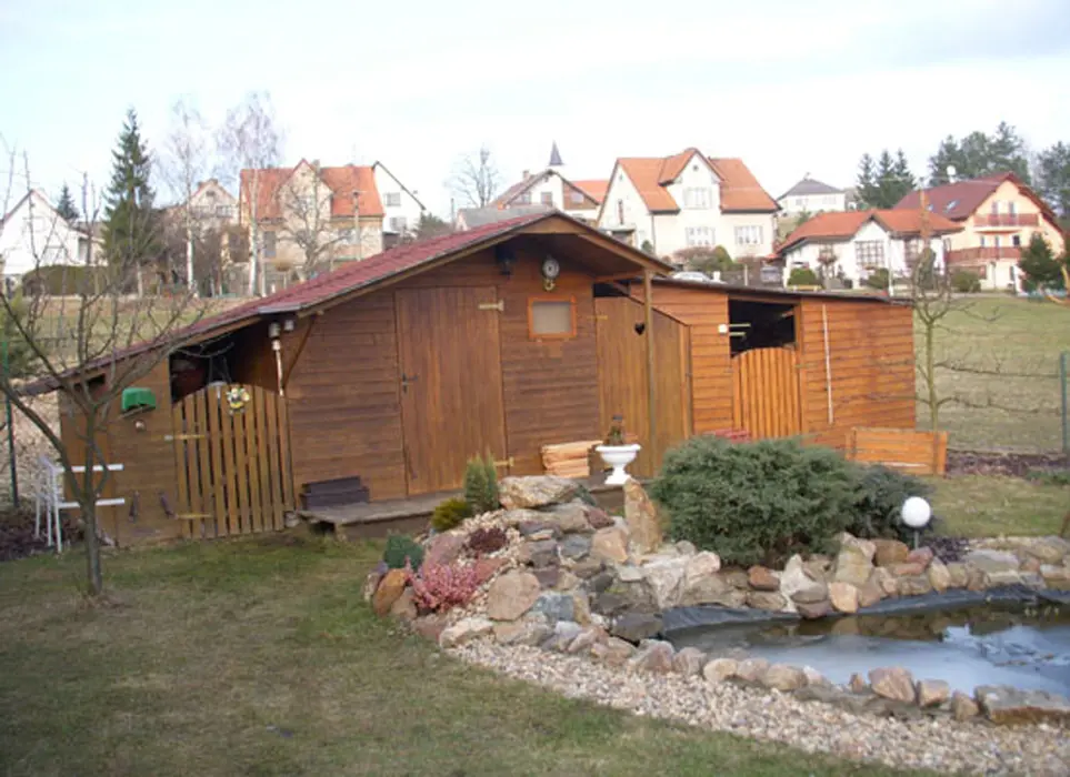 11 km Tábor, 5 km Soběslav, v obci Skalice. V domě trvale bydlí majitel, pronajímá se apartmán v patře - má vlastní vchod ze zahrady, chatka je umístěná v zahradě