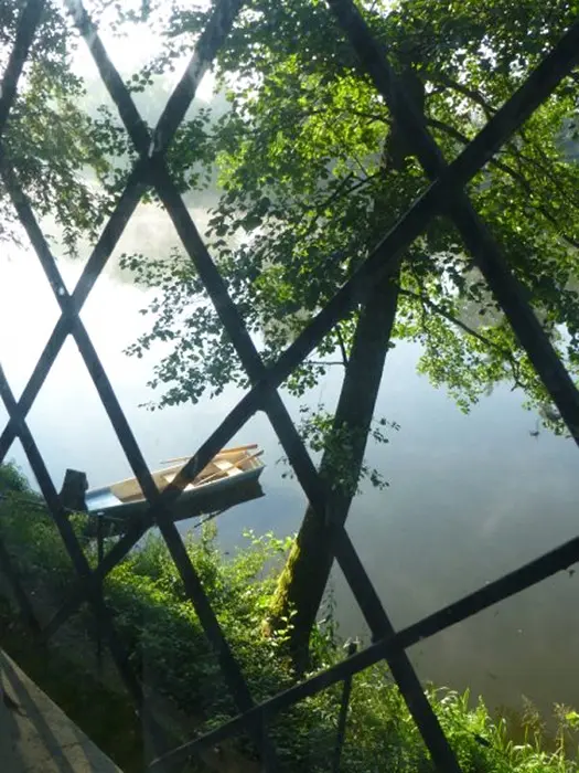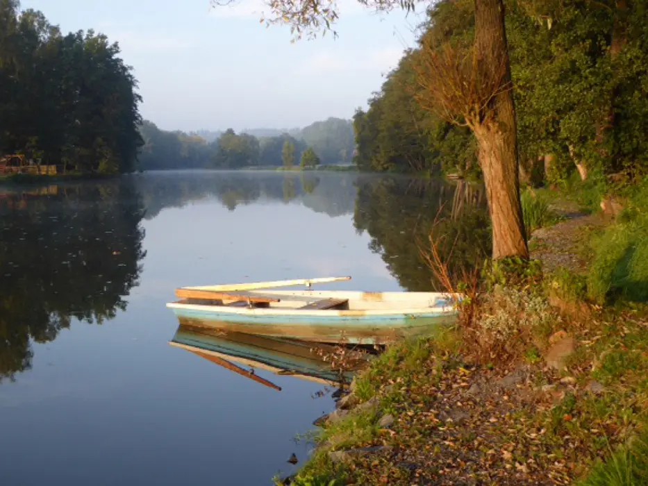 Veliký otevřený pozemek 8000 m2, posezení u ohniště a udírny, zahradní nábytek, lavice, slunečník, zdarma - po dohodě k zapůjčení pramice