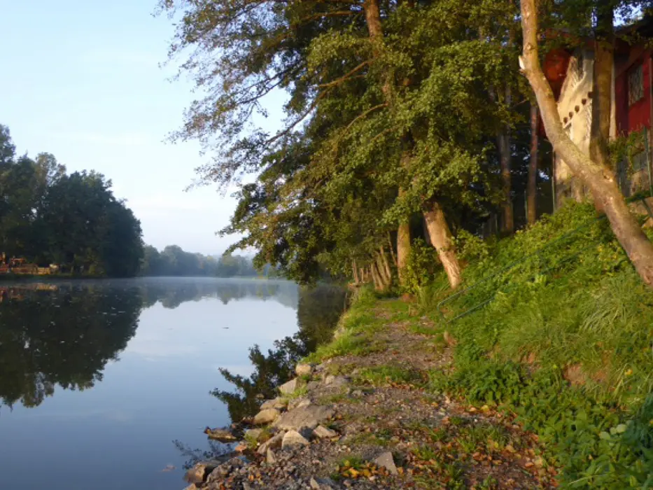 10 km Tábor, 7 km Soběslav, cca 1 km od obce Skalice, na břehu řeky Lužnice - chatová osada