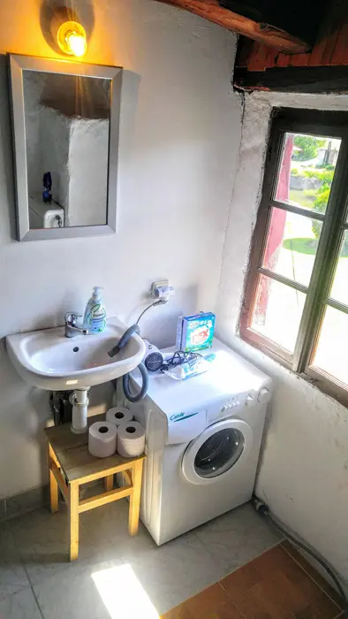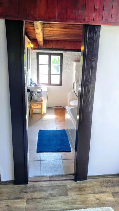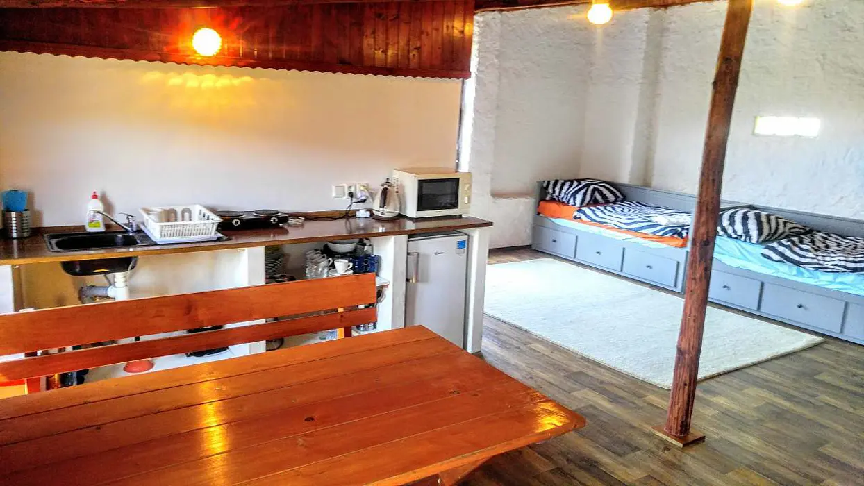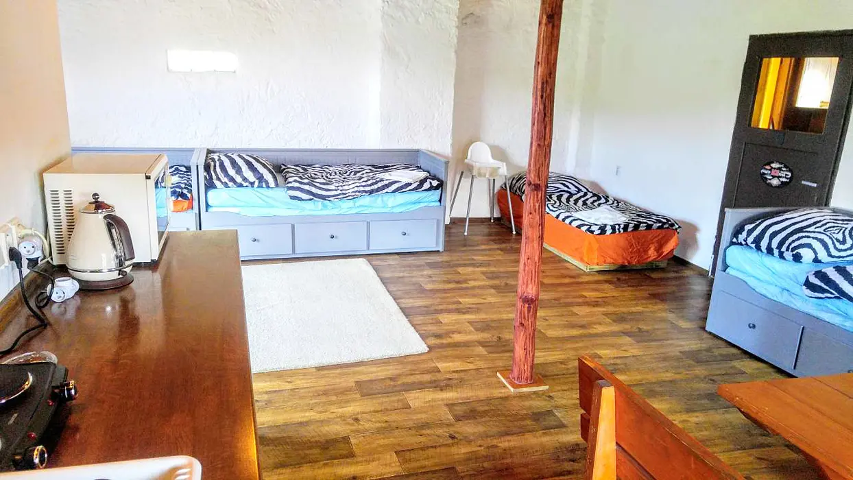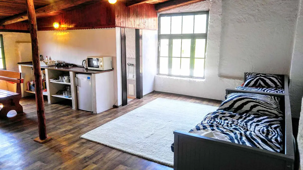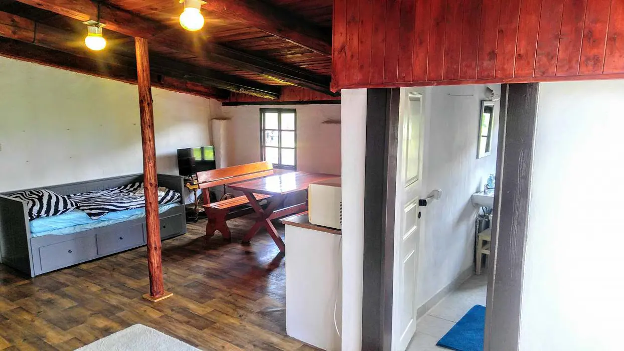 Obytná světnice jako ze starých časů s kuchyňským koutem, předsíní a koupelnou. Kuchyňský kout je vybaven: lednice, dvouvařič, mikrovlnka, varná konvice, kávovar a základní nádobí. V obývací místnosti jsou 3 rozkládací sedačky - možnost spaní až pro 6 osob + 1 ložnice se samostatným lůžkem. Koupelna s vanou a WC. K dispozici pračka, fén a žehlička. Topení centrální