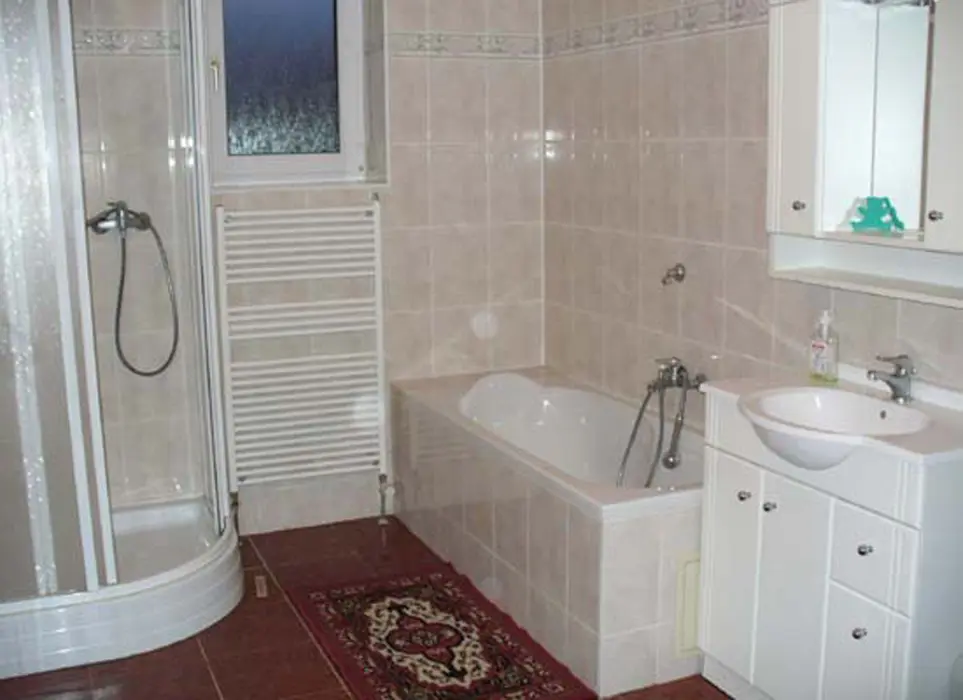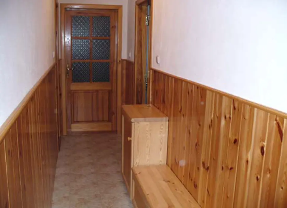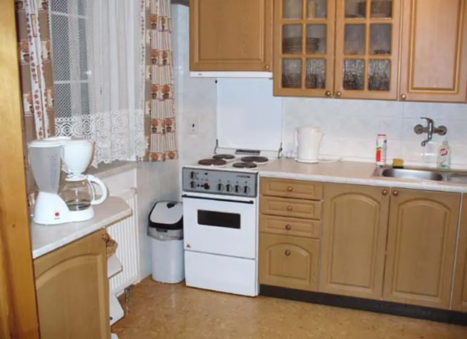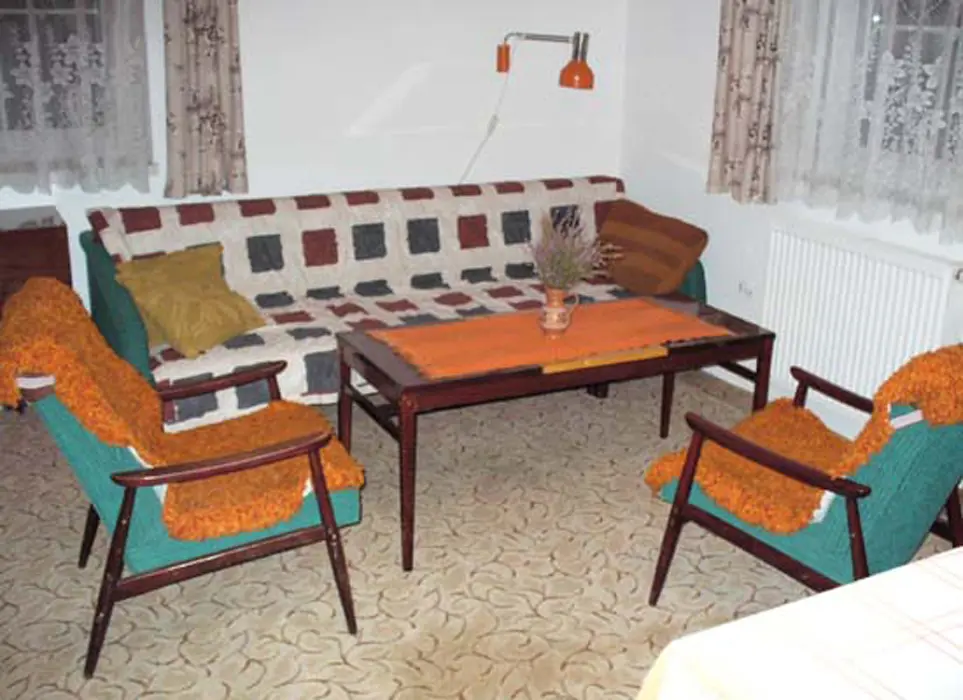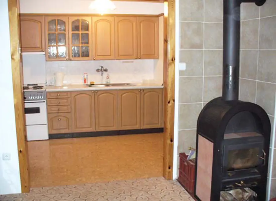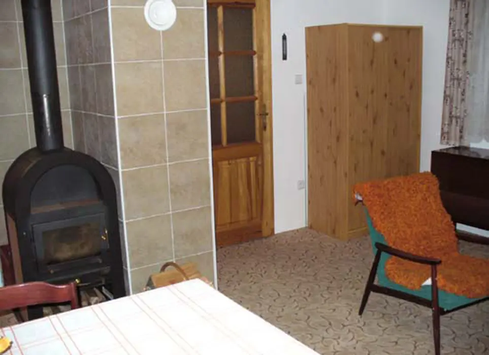 Obývací pokoj s posezením, krbová kamna, stůl a židle, BTV+SAT, samostatná kuchyně - el. sporák, varná konvice, lednice, MVT, základní nádobí. 2 ložnice 1x4, 1x3 lůžka + možnost 2 přistýlek. Koupelna s vanou a sprchovým koutem, samostatné WC. Topení na tuhá paliva
