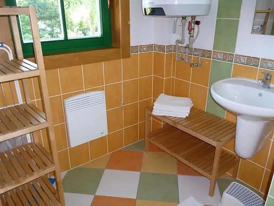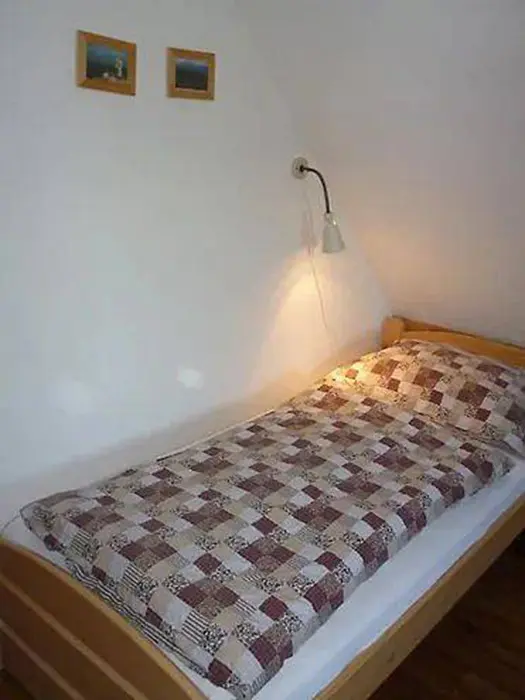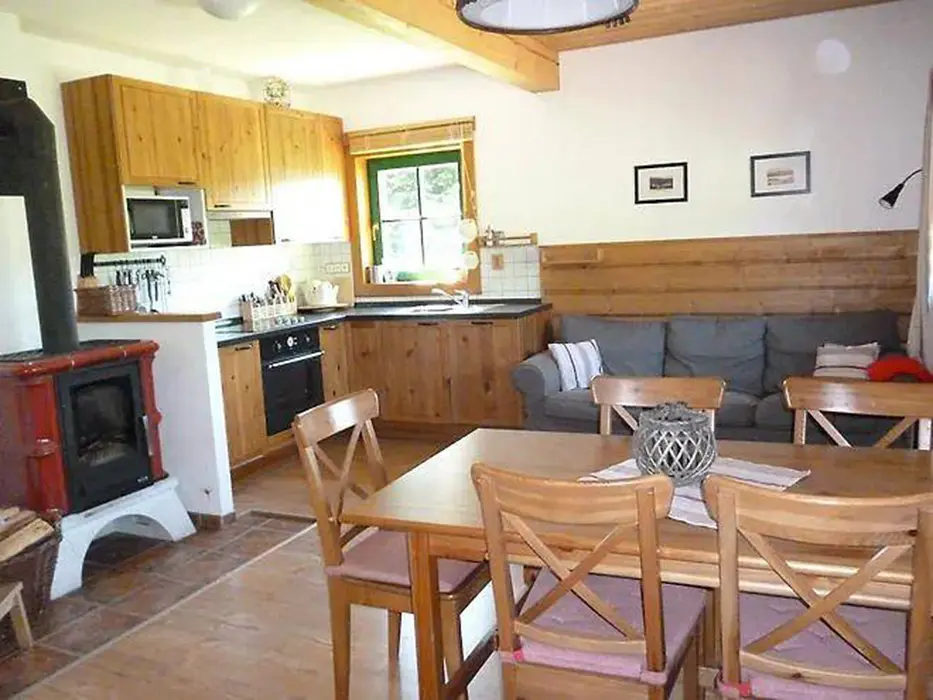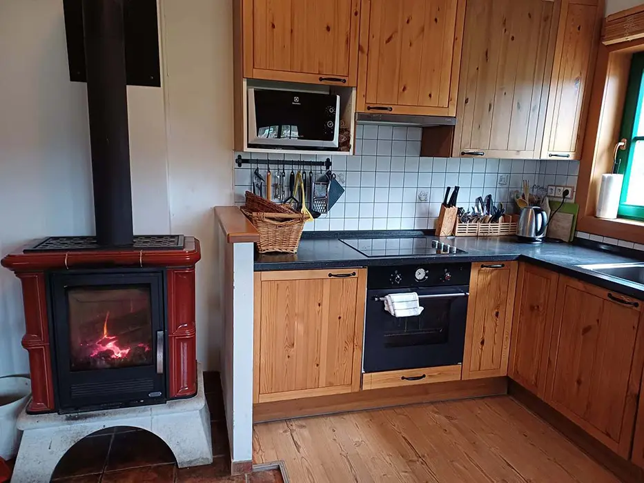 Obývací pokoj s posezením, krbová kamna - spojený s kuchyňským koutem - myčka nádobí, lednice s mrazákem, elektrická trouba, sklokeramická varná deska, mikrovlnná trouba, varná konvice, veškeré nádobí, utěrky, mycí prostředky. V patře 2 ložnice 1x2, 1x3 lůžka s úložným prostorem. Sociální zařízení -sprchový kout, ručníky, osušky, WC, topný žebřík. Topení – tuhá paliva , přímotopné panely