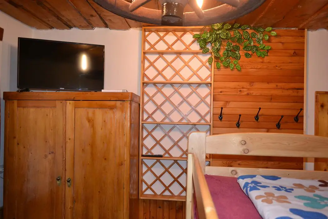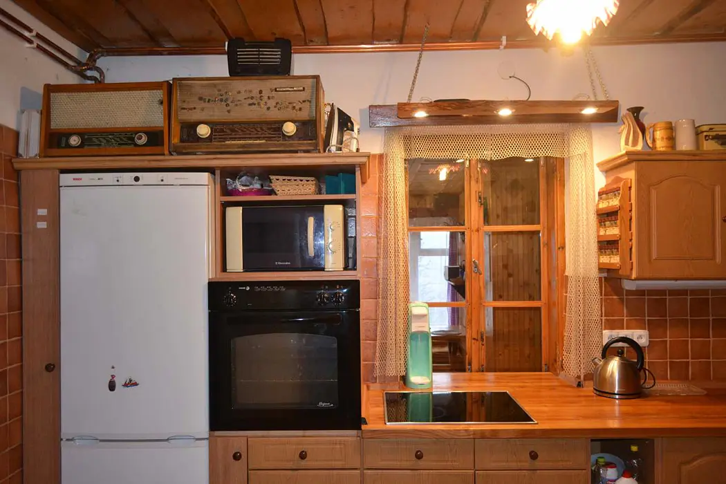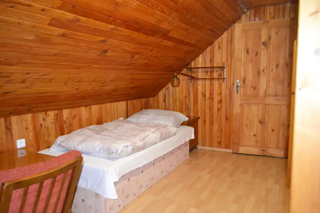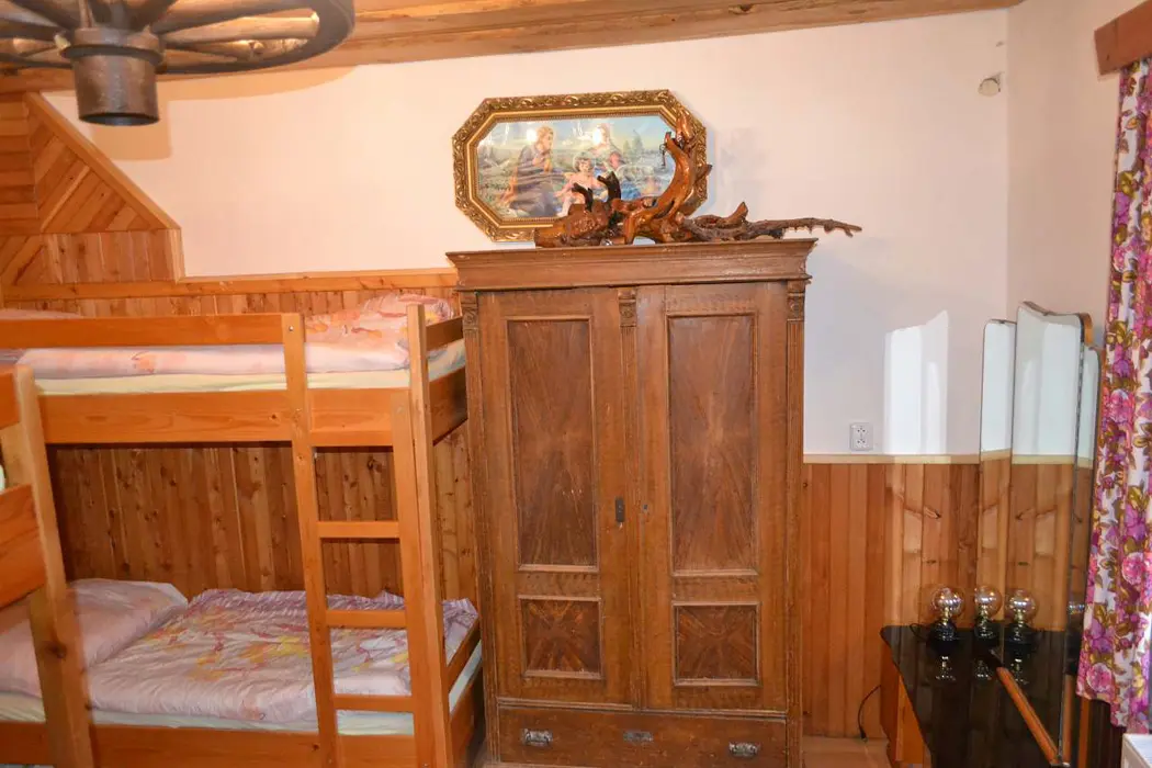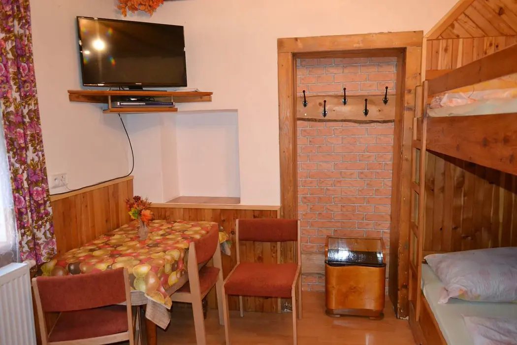Společenská místnost - SAT, DVD, TV, WiFi, krb, společenské hry. Kuchyně - el.vařič, pečící trouba, mikrovlnná trouba, varná konvice, kamna, lednice, pračka. 3 ložnice - 2x4, 1x6 lůžek, dětská postýlka, kolébka, ve společenské místnosti 4 přistýlky. Sociální zařízení - koupelna s vanou, sprchový kout, WC, druhá koupelna - sprcha, WC, podlahové topení a pračka. Topení - podlahové.